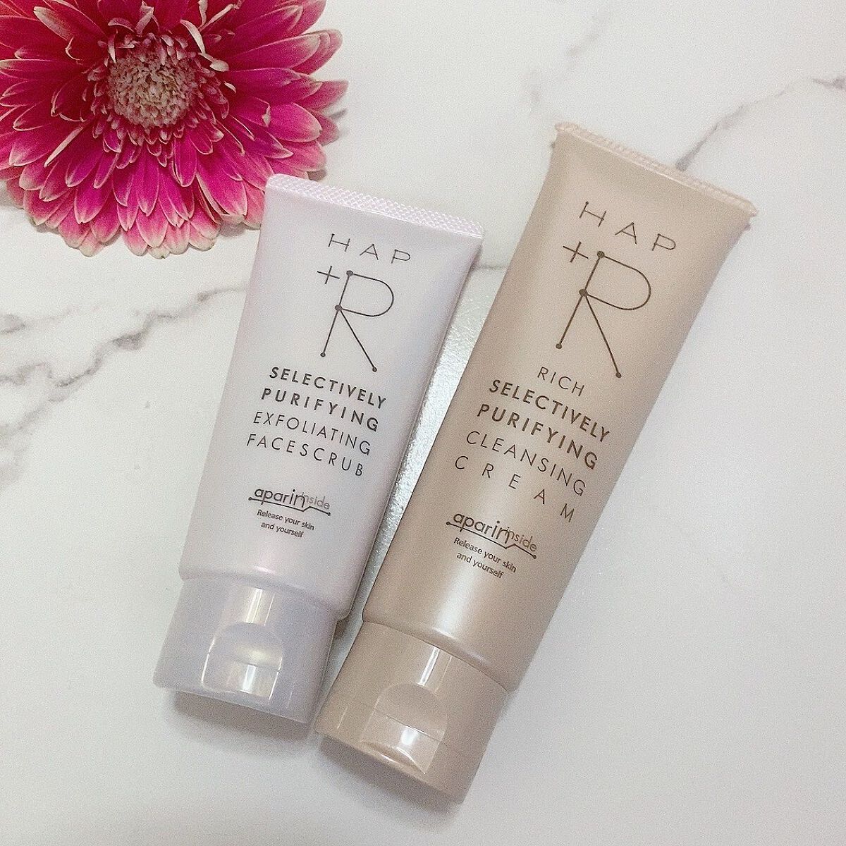 ハップアールはSNSでよく見かけて気になってたのー♡ 今なら2025年1月15日まで「洗顔用吸水リストバンド」が必ずもらえるキャンペーンを実施しているからチェックしてみてね♡ ベストゴマージュ・ピーリング部門第2位に選ばれたアイテムスキンケア用アパタイトをスクラブ粒子化し、たっぷりと配合 結構しっかりしたスクラブなのー。このツブツブ感が気持ちよくて好き♡ハマる♡ パパインとリパーゼの2種の酵素を配合。スキンケア用アパタイトと酵素がWで毛穴汚れにアプローチ♩ 泡立ちが良くてもこもこ♡