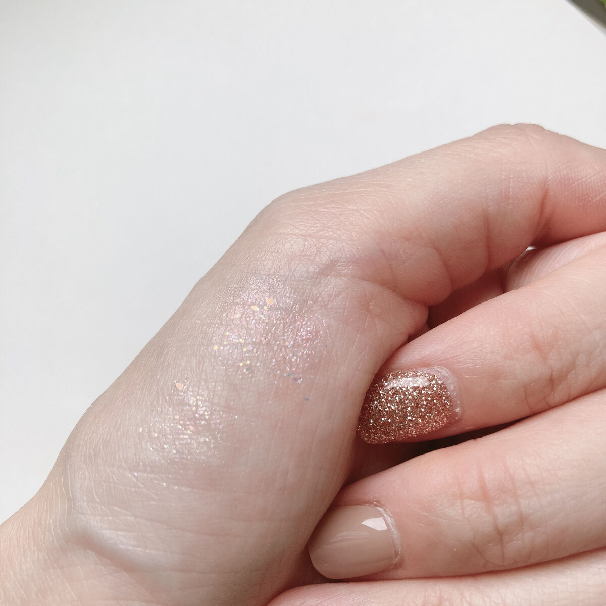 光の加減によってチョコレートカラーになったりレッドブラウンになったり不思議な絶妙カラー。 ピンクラメの他にもグリーンラメもチラチラして、なんかもうめちゃくちゃ綺麗です🥰 でもそんなにラメ感は派手でなく、自然。 見た目以上にニュアンス発色なのでメイクに深みを出したいときにちょい足しするにも便利◎ さらっとした粉質は好き嫌いがわかれそうですが、個人的にはぼかしやすくて好き👏