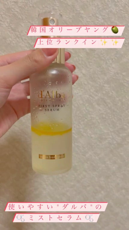保湿と同時に肌のツヤケアを叶えてくれるミスト。繊細なミストでお肌に優しく付着してくれるよ💧 ダルバが独自に開発した「トリュフェロール」により肌の内側、外側の両方から弾力改善 主原料として使用している「ホワイトトリュフ」にはしみやシワの原因となる、肌の酸化を抑える効果がある。