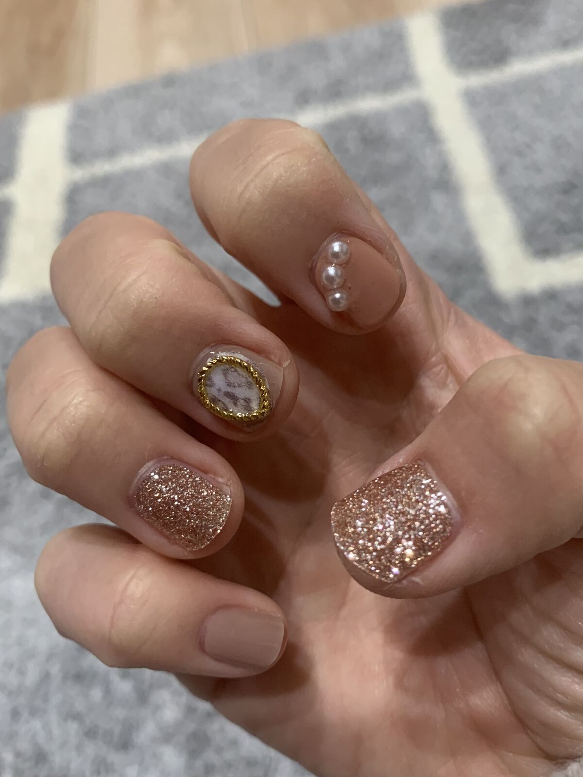 🧸ohora セミキュアジェルネイルNPeachySparkle ND-073-J୨୧‥∵‥‥∵‥‥∵‥‥∵‥‥∵‥‥∵‥∵‥‥∵‥∵‥‥∵‥୨୧ 液体ジェルを約60%までかためてつくったジェルネイル💅初めてohoraを使ってみました❣デザイ...