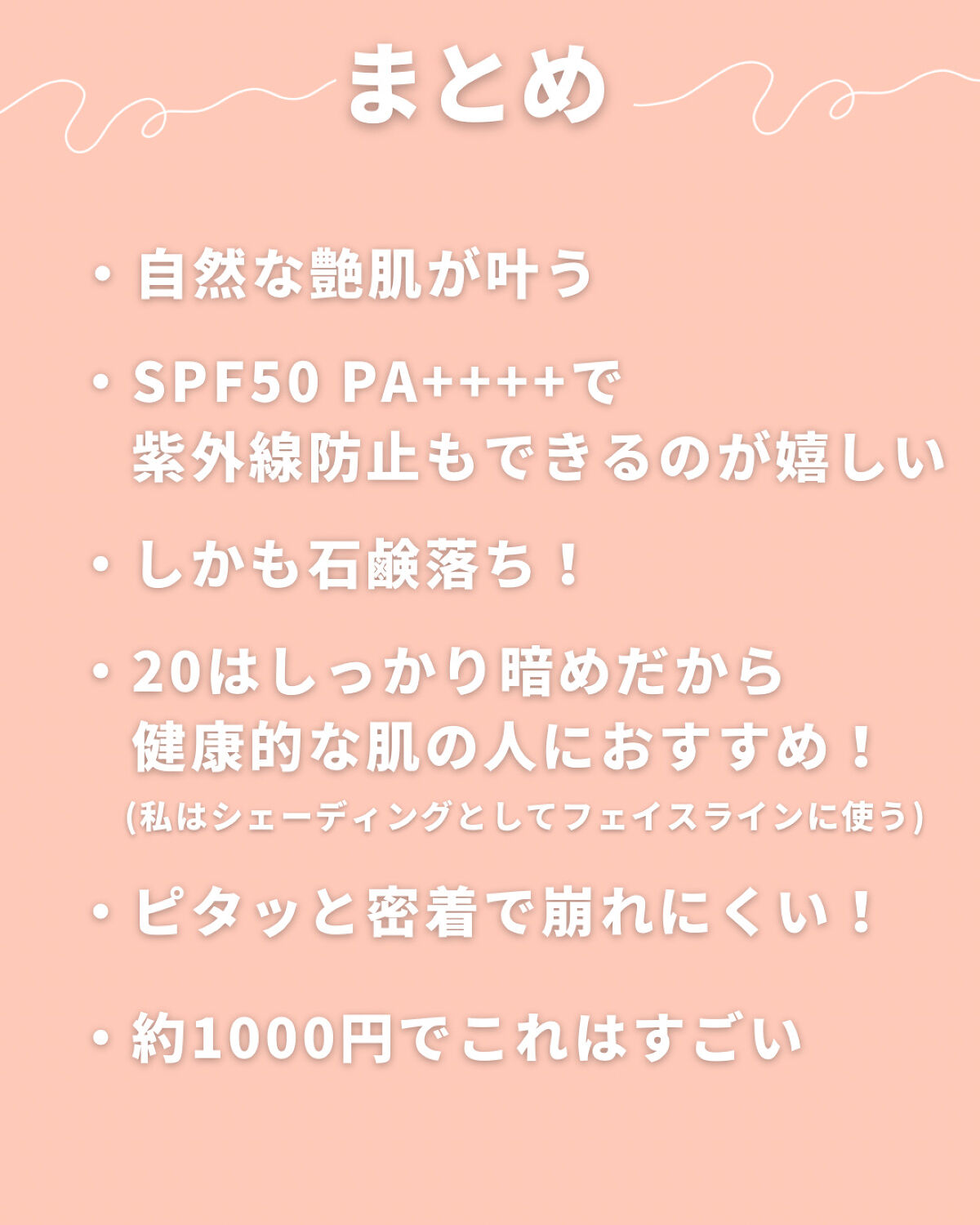 | ファンデーションランキング第20位 | なめらかで伸びがいい◎ 肌に馴染むと、すべりにくく密着感のある質感に | 詳細を見る | |