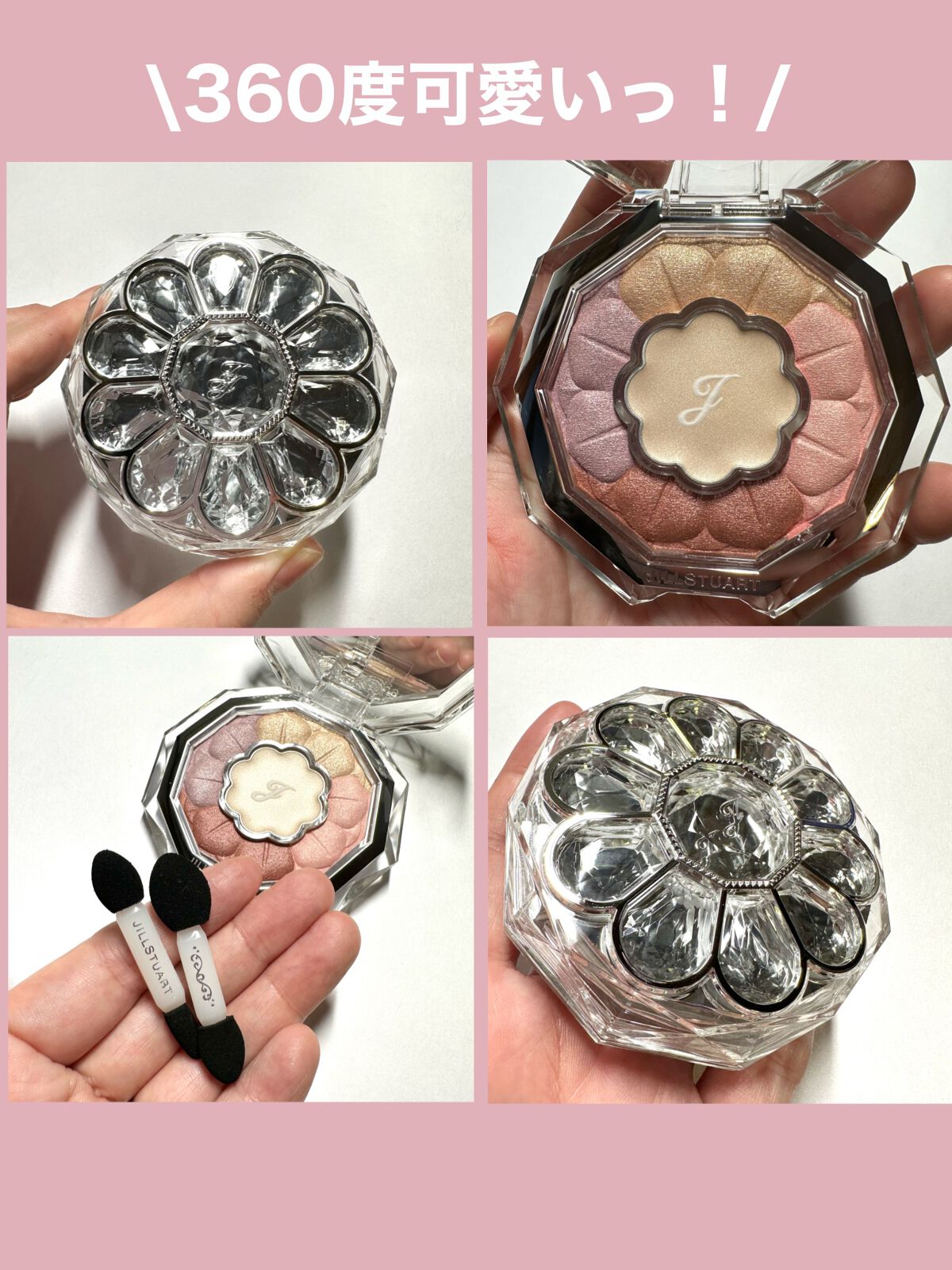 可愛すぎてうっとりしちゃうデザイン🥰💐 中央にアイベース、その周りを花びらのように配色されている5色のアイシャドウ。 柔らかい繊細なラメと透明感のある発色がとっても可愛い💗💗 主張し過ぎないからデイリーメイクにも◎