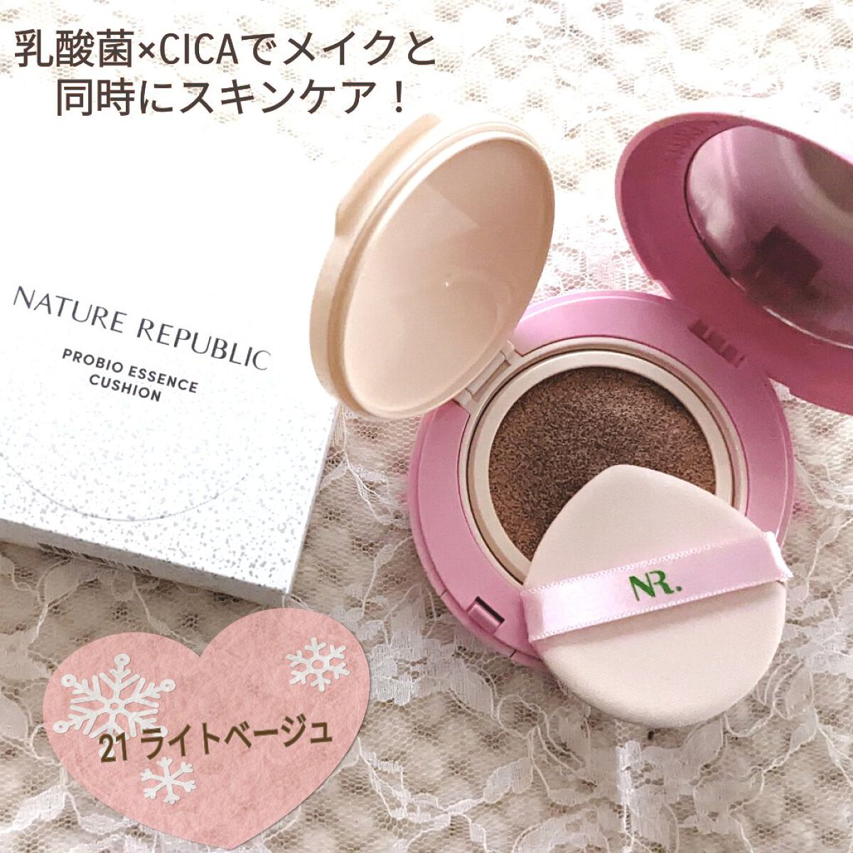 ネイチャーリパブリックPROBIOエッセンスクッション購入しました。クッションファンデは、かなり薄付きで自然です。マスクをしても、汚く崩れたりなど変になりません。が薄づきなので、コンシーラーが必要かもしれませんが、自然に見せたい時など用途が沢...