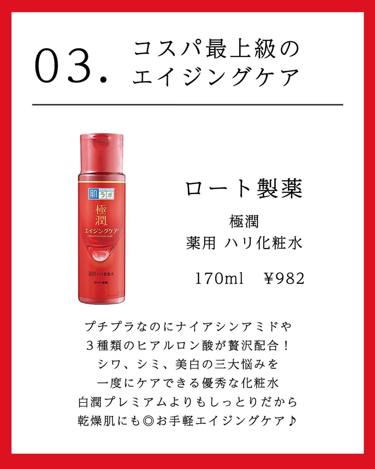 ドラッグストアはもちろん ドンキやバラエティショップで購入できるよ🛍 気になった商品があったら明日買いに行ってみて✨ ウルミナプラス 生ツヤキープミスト 70ml ¥973 レプリカノーツ ¥731 極潤 薬用ハリ化粧水 170ml ¥982 fino プレミアムタッチ 浸透美容液ヘアマスク 230g ¥1,078 美白美容液 W 30ml ¥1,210 ピンクミー ウォーターコンク コントロール ヘアオイル 100ml ¥1.539 カウブランド 赤箱 1個 ¥131 ヘパトリート 薬用保湿化粧水 385ml ¥1.980