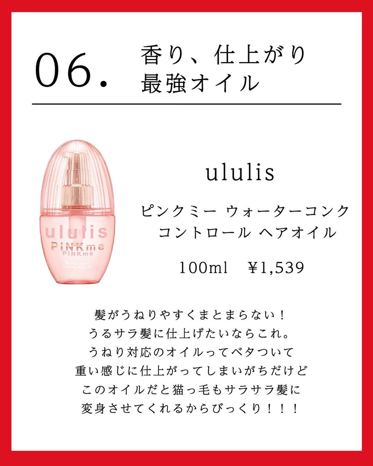 ululis ピンクミー ウォーターコンク コントロール ヘアオイル | 1,540円 |