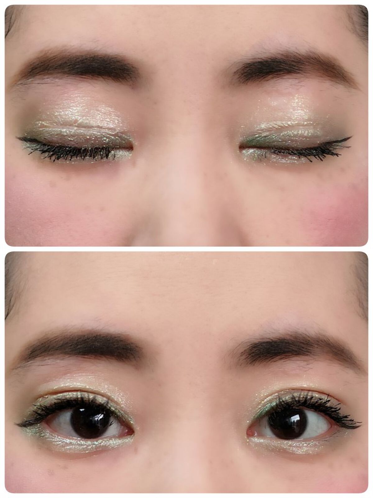 アリィー ニュアンスチェンジUV ジェル RSを、顔全体にまんべんなく塗ります。 RMK RMK ジェルクリーミィファンデーション 103を、顔全体にまんべんなく塗ります。 ジョンソンベビー ジョンソン ベビーパウダーを、顔全体にまんべんなく軽くはたきます。 THE BODY SHOP bronze shade warm glowを、両頬に塗ります。 KATE リフレクトミラーアイズ BR-1の締め色を、眉毛全体にまんべんなく塗ります。 URGLAM UR GLAMBLOOMING EYE COLOR PALETTE 01を、使用しました。 ちふれ リキッド アイライナー 筆ペンタイプ BK30 ブラックを、塗ります。 CEZANNE エアリーカールマスカラを、まつ毛全体にまんべんなく塗ります。 MAYBELLINE NEW YORK コロッサルボリュームエクスプレスを、まつ毛全体にまんべんなく塗ります。 MAYBELLINE NEW YORK SPステイ マットインク 135を、唇全体にまんべんなく塗ります。