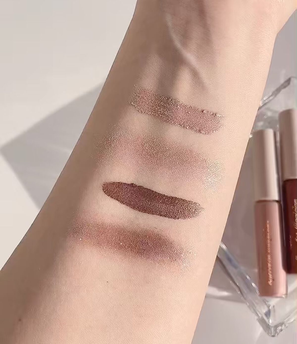 - リッチな輝きが長時間続く サラサラ仕上げのリキッドアイシャドウ 塗り心地はみずみずしくなめらかなのに、伸ばしていくうちにサラサラに変わる 魔法みたいなリキッドアイシャドウ♡ 速乾だからヨレにくく、ふたえのラインにたまりにくい! リキッドアイシャドウならではの輝きが長時間続きます。