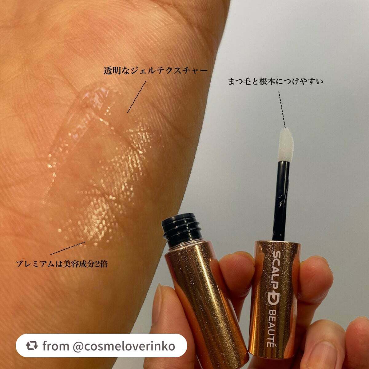 - スカルプDのまつ毛美容液プレミアムは、まつ毛ケア成分を通常品の2倍配合しており、1日1回のケアでもOK♪ さらに、プレミアムには、目元ケア成分配合。まつ毛のハリコシがアップし、上向きカールまつ毛をぐ~んとキープ♪ 使いやすさ・やさしさにこだわった、ふわふわカールチップ採用で根元からも塗りやすく、敏感な目元にやさしい使い心地です。 シリコン、オイル、アルコール(エタノール)、防腐剤(パラベン)、香料、合成着色料、界面活性剤、プロスタグランジン類似物質の8つの成分不使用の“ピュアフリー設計”を実現。 まつ毛エクステ、まつ毛パーマにもご使用いただけます。