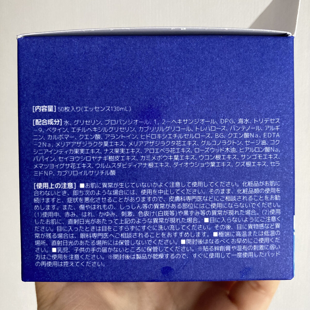- <10枚入り> 水、BG、グリセリン、ヒアルロン酸Na、カルボマー、アルギニン、プロパンジオール、カプリリルグリコール、エチルヘキシルグリセリン、DPG、ヒドロキシエチルセルロース、トレハロース、クエン酸、セラミドNP、ベタイン、クズ根エキス、パンテノール、1,2-ヘキサンジオール、アラントイン、海水、EDTA-2Na、クエン酸Na、セイヨウシロヤナギ樹皮エキス、セージ油、パパイン、カプリロイルサリチル酸、トリデセス-9、カミメボウキ葉エキス、ナス果実エキス、メリアアザジラクタ葉エキス、メリアアザジラクタ花エキス、コクシニアインディカ果実エキス、ウコン根エキス、サンゴモエキス、グルコノラクトン、ローズウッド木油、メマツヨイグサ花エキス、ウルムスダビディアナ根エキス、ダイオウショウ葉エキス、アロエベラ花エキス <50枚入り> 水、BG、グリセリン、ヒアルロン酸Na、カルボマー、アルギニン、プロパンジオール、カプリリルグリコール、エチルヘキシルグリセリン、DPG、ヒドロキシエチルセルロース、トレハロース、クエン酸、セラミドNP、ベタイン、クズ根エキス、パンテノール、1,2-ヘキサンジオール、アラントイン、海水、EDTA-2Na、クエン酸Na、セイヨウシロヤナギ樹皮エキス、セージ油、パパイン、カプリロイルサリチル酸、トリデセス-9、カミメボウキ葉エキス、ナス果実エキス、メリアアザジラクタ葉エキス、メリアアザジラクタ花エキス、コクシニアインディカ果実エキス、ウコン根エキス、サンゴモエキス、グルコノラクトン、ローズウッド木油、メマツヨイグサ花エキス、ウルムスダビディアナ根エキス、ダイオウショウ葉エキス、アロエベラ花エキス