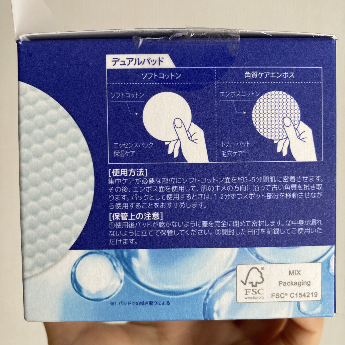 - N.M.Fパッド1枚で保湿ケアから毛穴ケアまで! 高保湿エッセンス(海洋深層水、ヒアルロン酸Na、セラミドNP)をたっぷり含んだ刺激の少ない100%コットンパッド。 ポアコンプレックス、セイヨウシロヤナギ、樹皮エキス、LHA配合。拭き取りシートとして使うことで余分な老廃物を除去し毛穴汚れをオフ。スキンケアの一番はじめに使用すると後から使用するスキンケアの浸透力*が高まります。 使いやすい直径6cmサイズのコットンパッドで、部分的なシートマスクとしてもお使いいただけます。 マスクの着用などで部分的に刺激された肌にもおすすめ。 忙しい朝、肌の悩みをすぐにケアしたい時のほか、両頬・額・アゴなどの部分だけを集中ケアしたい時や、角質が浮くなどで化粧ノリが気になる時に。*角質層まで