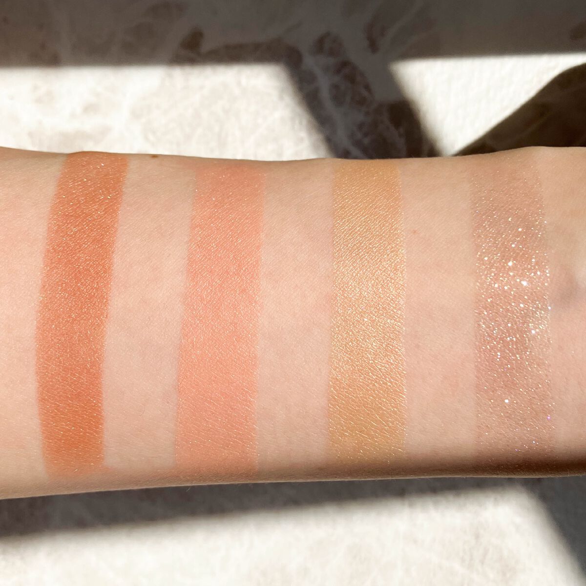 このリップ、すごい話題ですよね! うるうるちゅるんちゅるんでとっても可愛い🥺 *01ココヌード ヌードベージュ。発色は淡め。 ミルクティーみたいなピンクベージュに。 *03ソルベバーム 王道ピンク。赤みすぎず黄色みすぎず誰にでも合いそうな色。 *05ヌガーサンド 見た目ブラウンだけど唇に塗ると自分の唇の色に近く、少し血色を足して補正してくれるような色味。 *06カヤフィグ 05に少しローズを足したような色。可愛くなりすぎない落ち着いたローズピンク。 *07モーブホイップ 結構青み強く見えるけど唇に塗るとほぼ青みを感じないピンク。イエベさんが青みよりのメイクにしたい時に使いやすそう。普通に使いやすい。 全体的に溶けるような使用感。つやぷるリップより柔らかく、減りが結構早いです。 あと、少しだけ甘い匂いが付いています。 とっても可愛いですが、唯一の欠点はマスクにはべっとり付いてしまうのでマスク派の人は注意です!