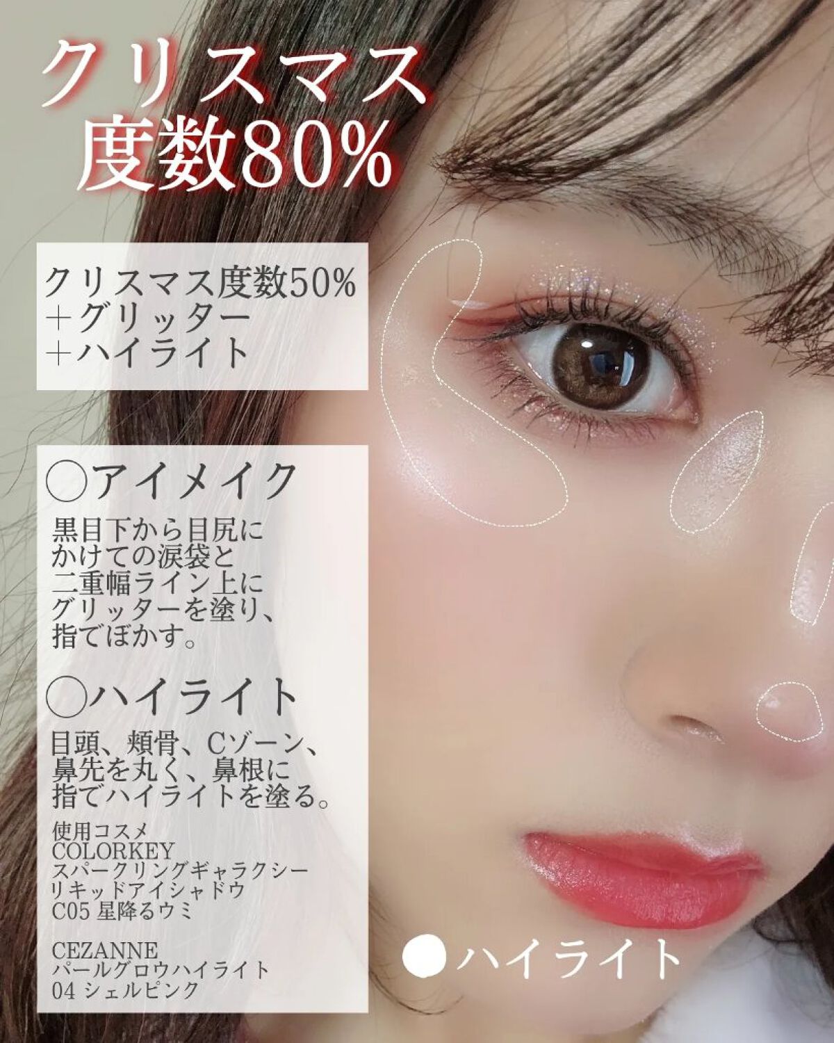 冬は赤みのあるメイクで血色感をプラスしたいよね! 私が大好きなプチプラアイシャドウがキャンメイク シルキースフレアイズ M02 チャイブリック❤️🤎 レッドブラウンみたいな色味がめちゃくちゃかわいいの! 大粒のラメが目に反射してまるで目の中にライトが入ってるみたい!