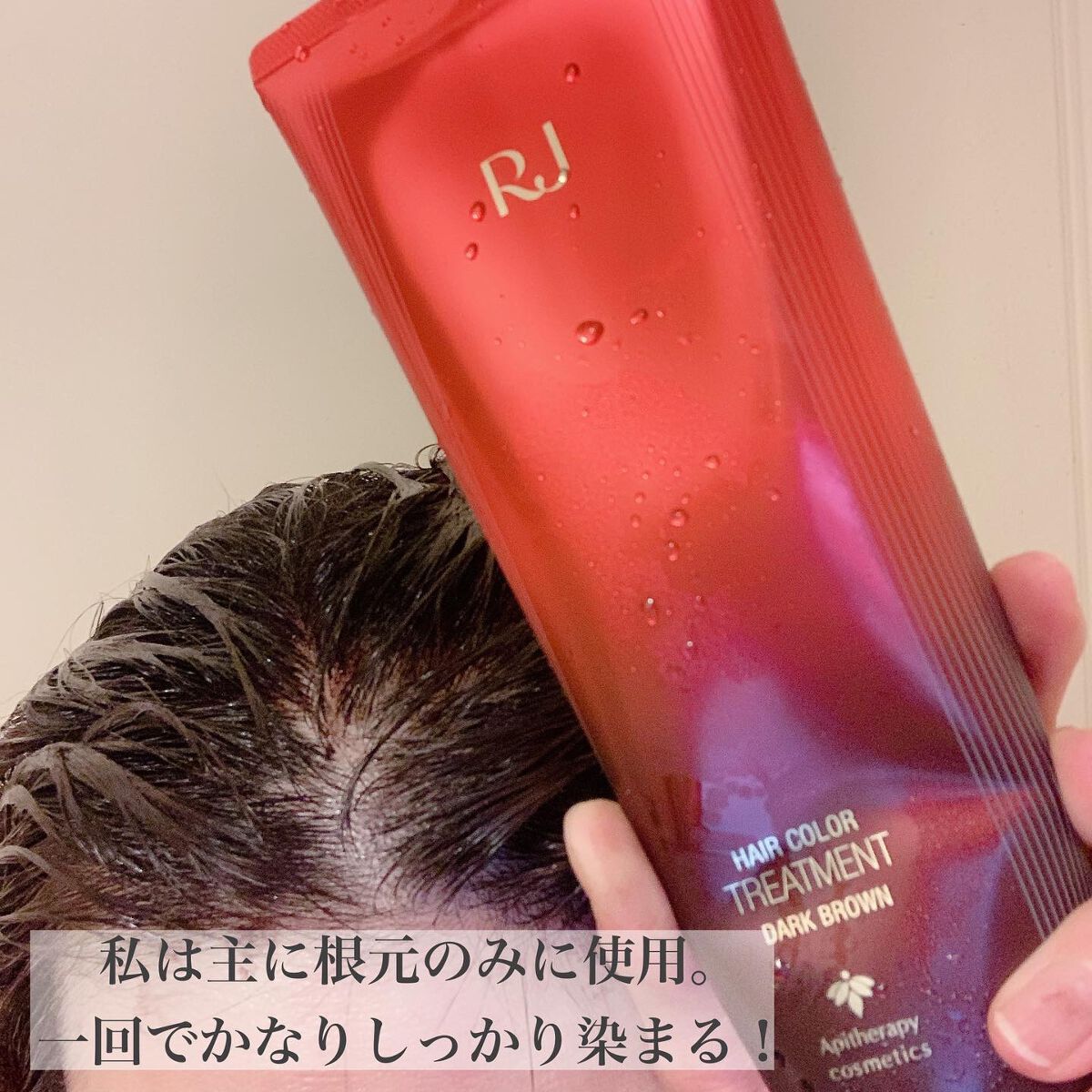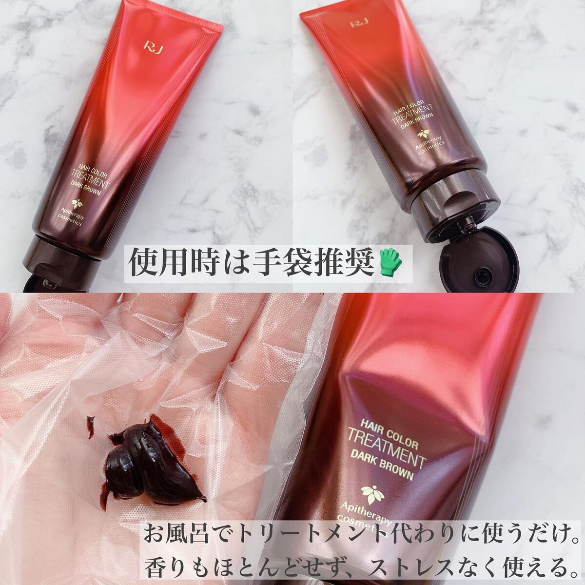 山田養蜂場の、アピセラピーコスメティクスよりRJヘアカラートリートメント ご紹介✨️ 色はダークブラウン 使い方は簡単で、シャンプー後、ビニール手袋して手に取り白髪部分に塗ってちょっと放置。 ヘアカラーなのにトリートメントも出来るのはポイント高め 白髪染めでお悩みの方は是非(*^^*)