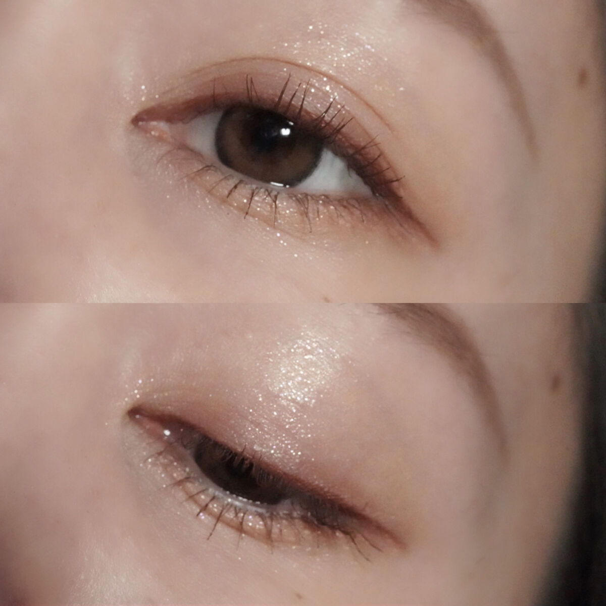 よくパレットのなかで明るいカラーをベースにまぶたに広く塗ることが多いのですが、パール感のあるカラーを避ける🙆♀️! パール感たっぷりの明るいカラーは涙袋に使うぐらい光を集めてぷっくり見せてくれるので、まぶたに広く使うと腫れぼったく見えがち😓 目元を明るくみせてくれたり、次に使うアイシャドウをぼかしやすくしてくれるけど、すっ飛ばしてメインのカラーを塗っちゃう✊🏻❤️🔥 涙袋にはたっぷり塗ってぷっくり見せる🙆♀️💕 シルキースフレアイズのマットタイプはすごく優れているな〜と感じました☺️💗 赤やオレンジなどは、入れすぎると腫れぼったく見えやすいので、見せたいカラーは下まぶた目尻にのせて色をたのしむ♡♡ パール感なしの透けマットだけじゃ物足りない… そう感じさせない華やかなラメが左上に入っているので黒目上と涙袋にのせるとすごく可愛い仕上がりに😍! 厄介な左右差のお陰でマットアイシャドウが好きになりました😌💕
