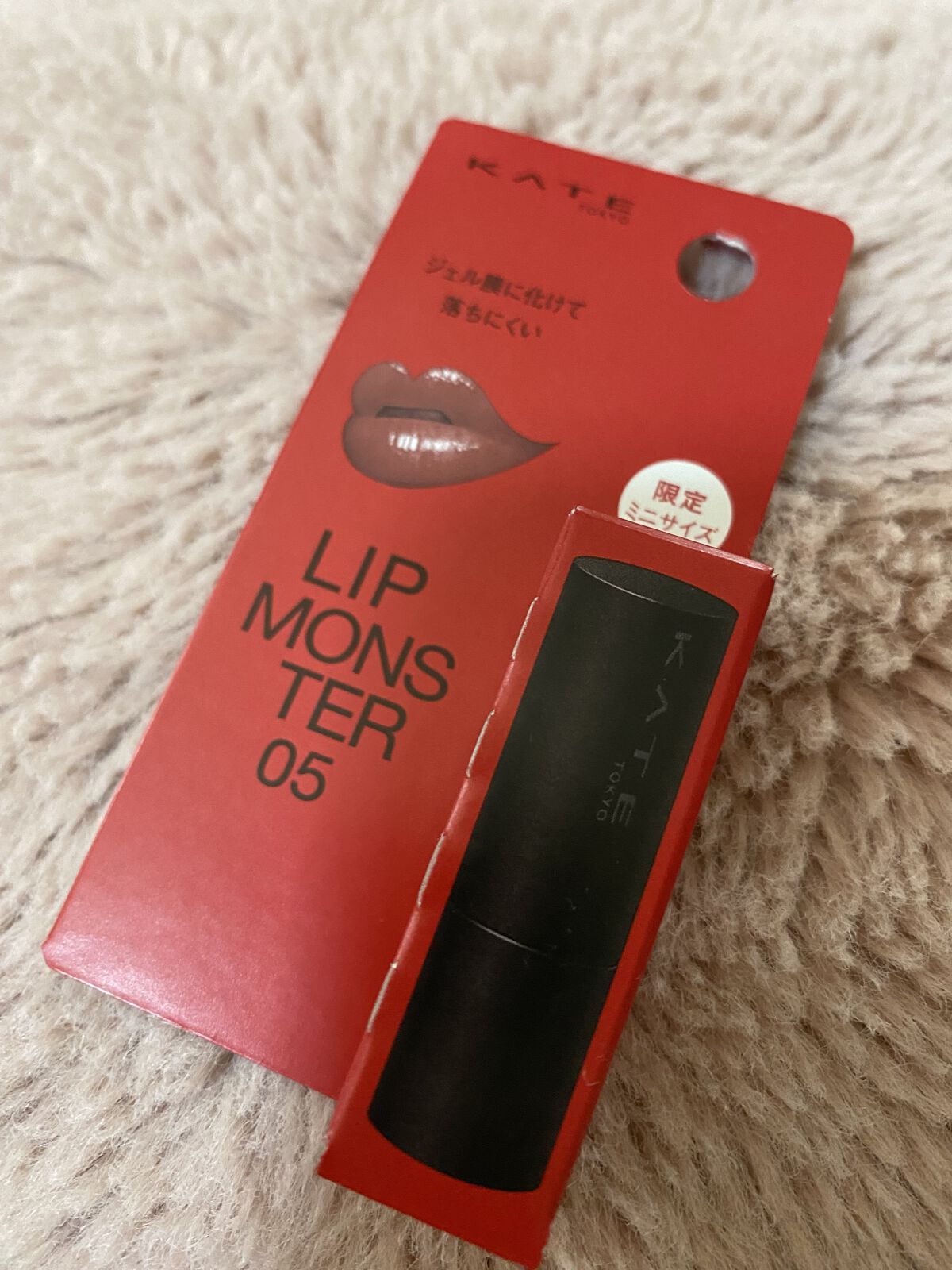 KATEケイトリップモンスター05 ダークフィグくすみが強いブラウンレッドカラー。でも、透け感もあって可愛い。塗ってしばらく放置するとティッシュオフしてもつかないし色持ちもよくてホント助かる!イエベもブルベも使いやすいニュートラルカラーじゃな...