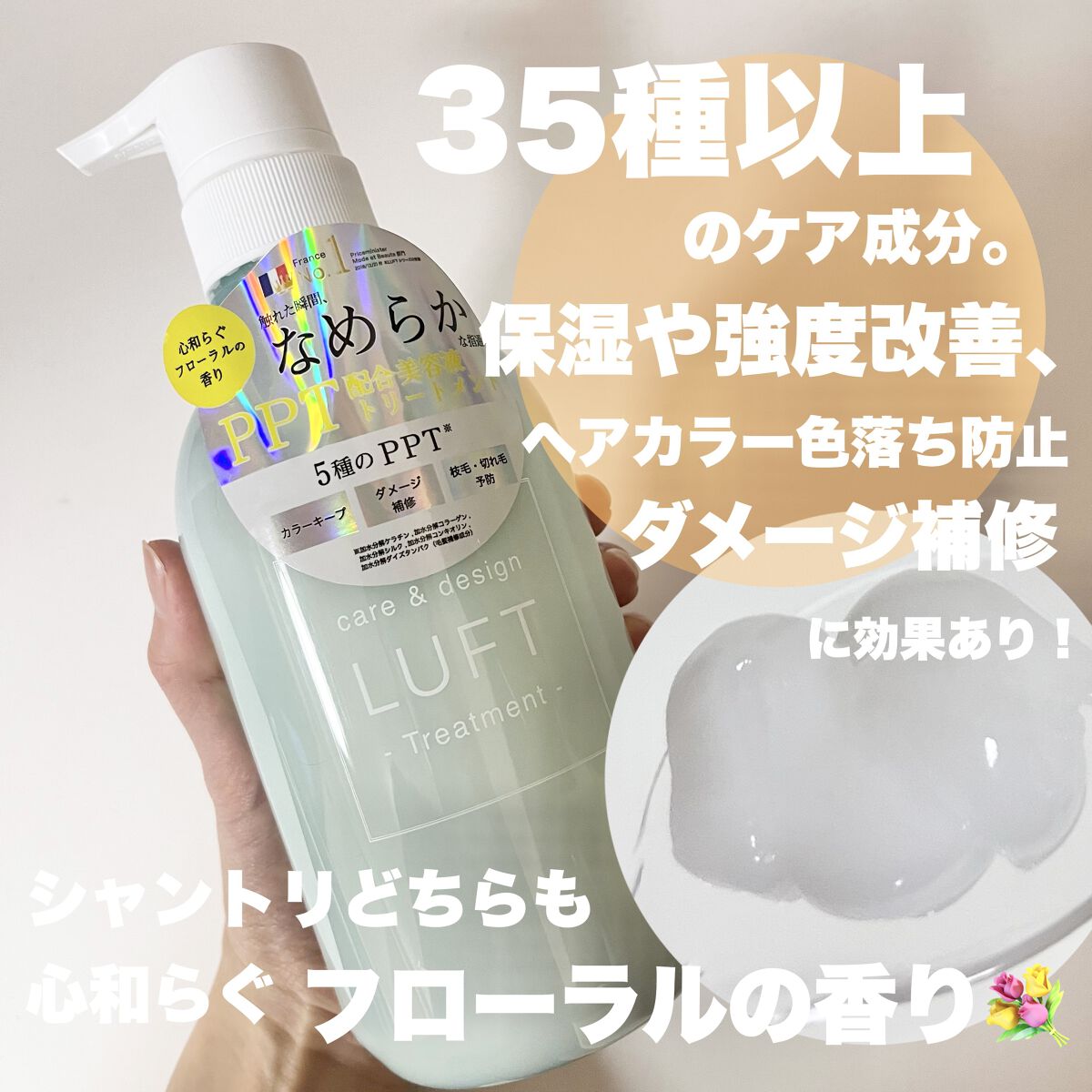 - ヘアケアブランドLUFTから「本物のサロン品質シャンプー」が誕生。 PPT*美容液配合のシャンプーで【美容液で洗う】という新感覚の特別なバスタイムをお届けします。 心和らぐフローラルの香りで毎日のバスタイムをリラックスタイムに。 *ココイル加水分解コラーゲンK、ココイル加水分解ケラチンK(羊毛)(全て洗浄成分)