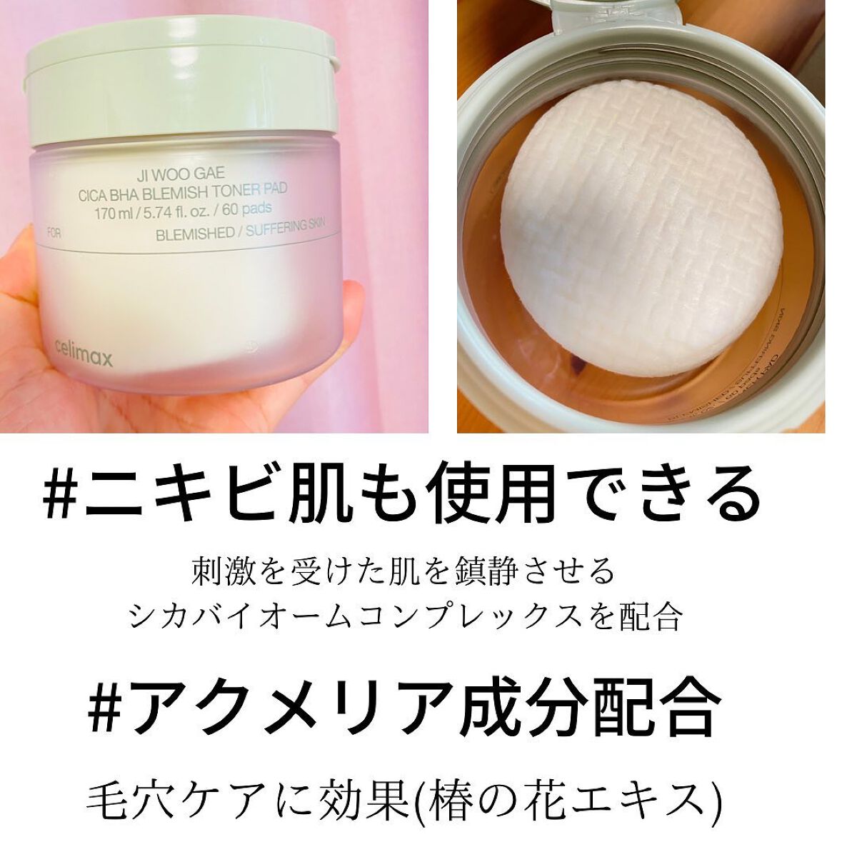 敏感肌、ニキビ肌向け L鎮静成分"シカ"10,000ppm配合 毛穴引き締めケア L アクメリア(椿の花エキス)配合 メイクくずれも軽減する気がするのでノニアンプルを塗った後にこちらのパッドを使用するのが最近のメイク前のルーティンになっています🐈