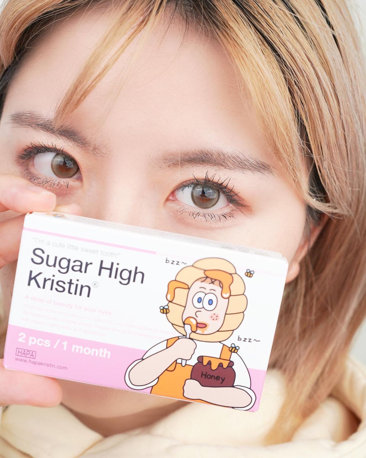 IVEのウォニョンちゃんが広告モデルを務めるHapa Kristinの "Wake Up Kristin"☁*° 冬らしいひんやりとした印象の瞳になるグレーカラコン🧊🫧ツヤのあるアイシャドウやグリッターとの相性が良くて華やかなウィンターメイクにピッタリのレンズです◎ 使用期間:1month 度数:±0.00〜-8.00 直径:14.2mm 着色直径:12.7mm B.C:8.7mm 含水率:48%