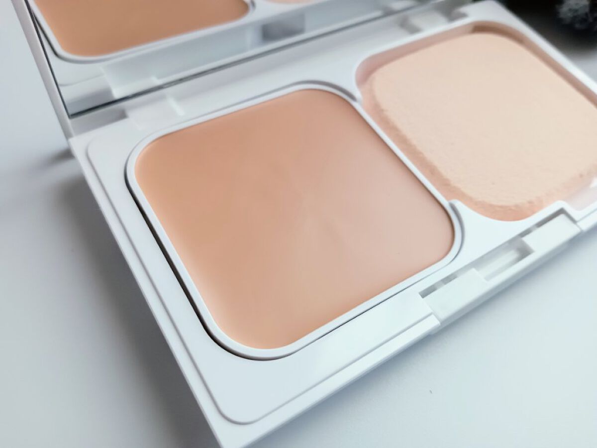 こちらはUVケアも◎ セッティングも簡単に装着できます😁 このブラック色したシンプルデザインの容器も素敵ですよね♡ パフにトントン馴染ませて肌にのせて みると少ししか取っていないのに、つきがよいですね。みずみずしいテクスチャです。 トントンなじませて伸ばしていくと 厚塗り感を感じさせない使用感です。 パフには、ほんの少しつけて内側から外にかけてポンポンと伸ばしていくのが ポイント。 つい、クッションファンデはたっぷりに なっちゃうけどほんの少しで良い◎ そうするとむらなく均一に肌にのせる ことができるね🥺