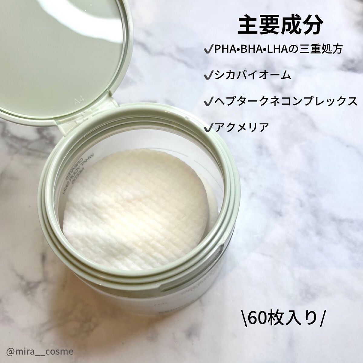 敏感肌、ニキビ肌向け L鎮静成分"シカ"10,000ppm配合 毛穴引き締めケア L アクメリア(椿の花エキス)配合 メイクくずれも軽減する気がするのでノニアンプルを塗った後にこちらのパッドを使用するのが最近のメイク前のルーティンになっています🐈