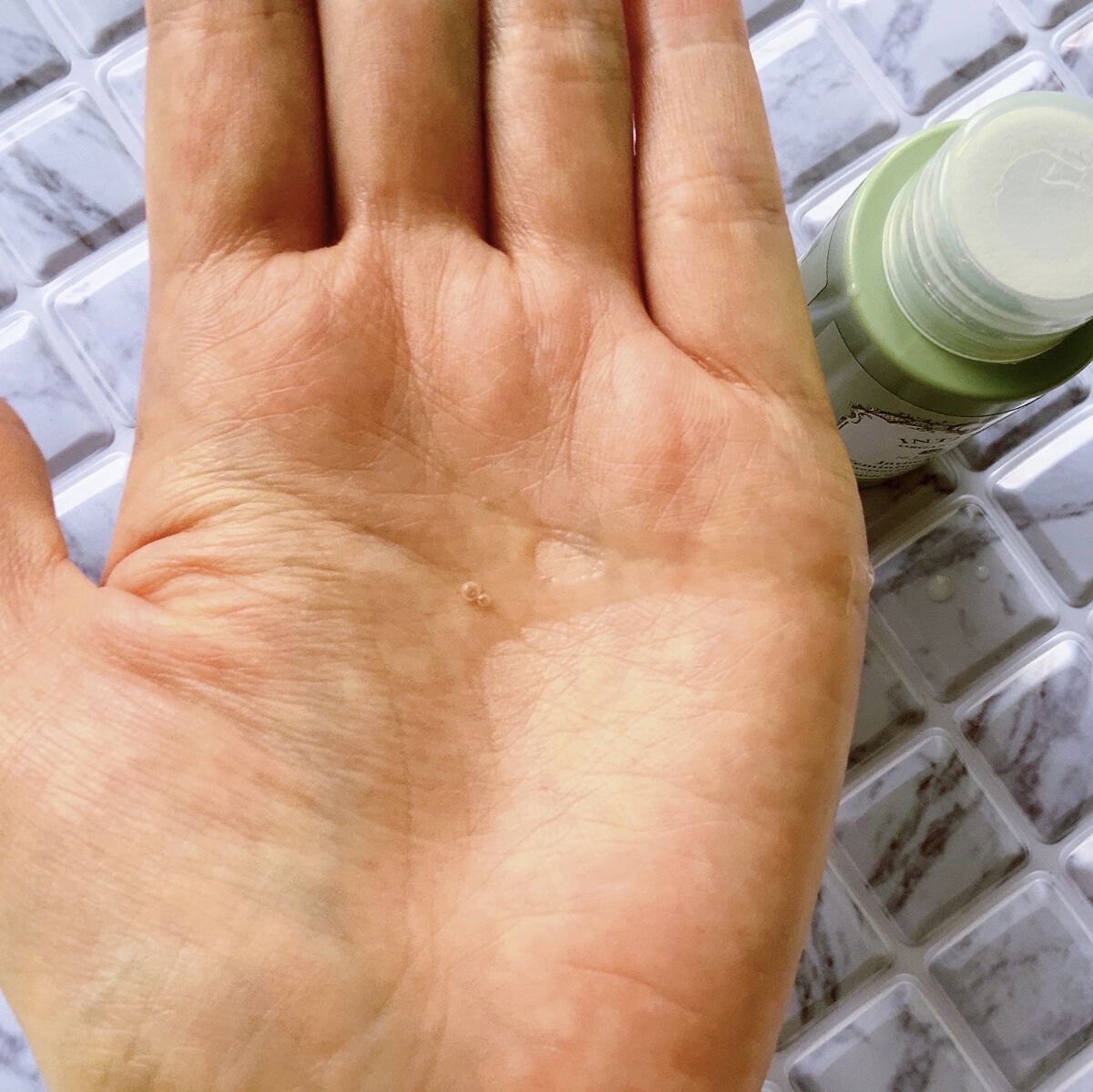 液体はあまりとろみを感じないサラッとしたテクスチャ。 伸ばしやすくて、スーッと馴染みますが、そのあとはペタペタせず不思議とサラサラに✨ ほんのりラメが入っててツヤ肌にもなる! トーンアップ血色アップを叶えてくれてこんなに良かったっけ? ボトルも相変わらずかわいいしテンションを上げてくれるのもいいな💗