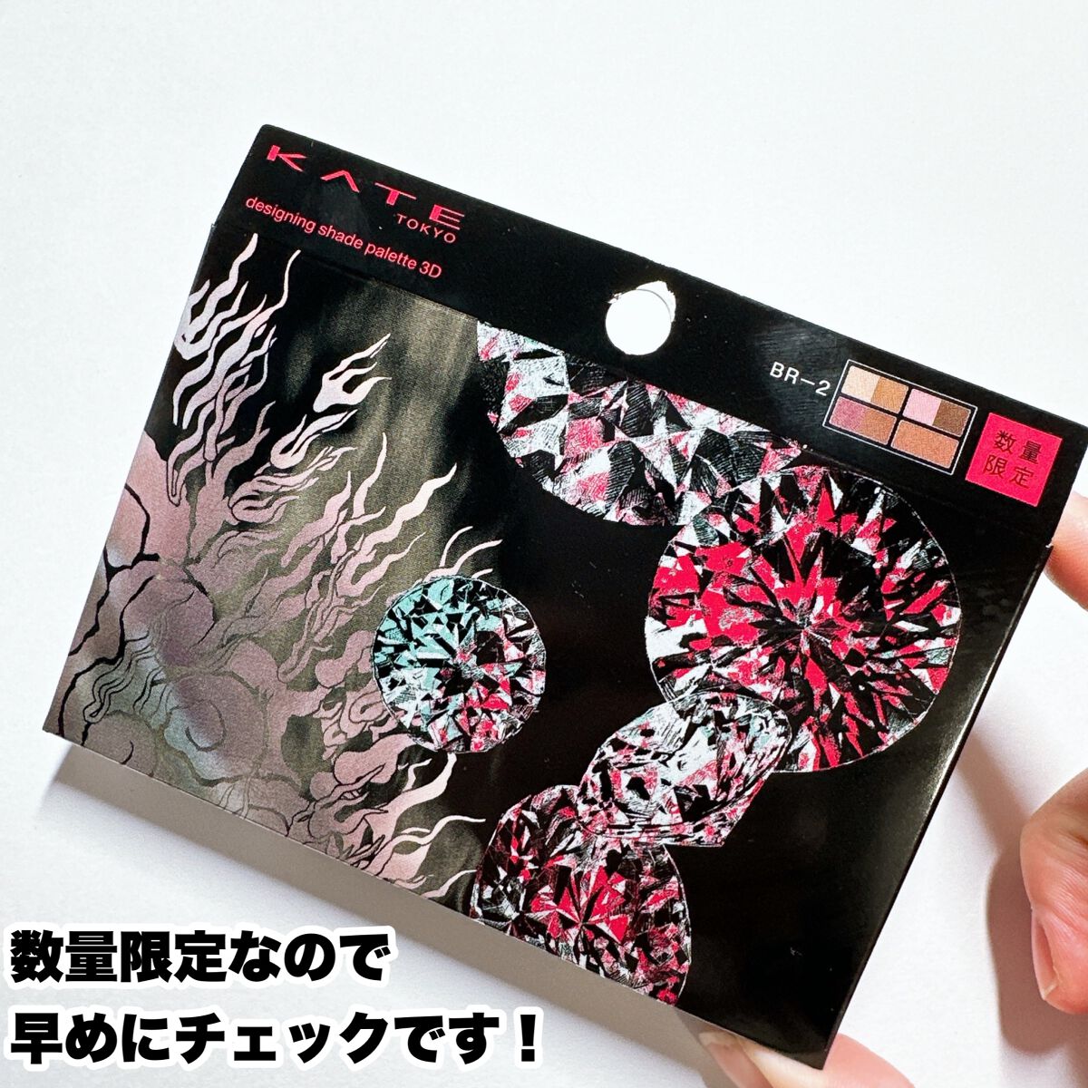 - 【魂コレクションについて】 コレクションテーマ:自分追求メイク 「魂」=自分らしさ。一番深いところにある、自分の原点。 個々人の生まれ持った骨格やパーツの美しさを引き立てながら、「もっとこうなりたい」という意志(内面個性)をも叶える、 そんな誰の真似でもない本当の「自分らしい美しさ」を追求できるメイクコレクション。 過去・現在のKATEの強みを進化させたコレクションアイテム。 ・伝統を現在に昇華させる着物ブランド「Rumi Rock」の芝崎るみさんとコラボレーションした、内から湧き出る魂を感じさせる特別なデザイン └全6商品 / 15 SKU 【デザイニングシェードパレット3D】 全2種(BR-1 ウォームシェード・BR-2 クールシェード) 陰影をデザインして骨格を強調。 デザイニングアイブロウ3Dの色味を再現した2色が入った7色セットのシェーディングパレット 主張しすぎない肌になじむマット質感でしっかり肌にフィット。各部位に適した影色設計と程よいつき具合になるよう調整されているので、簡単に立体感際立つホリ深フェイスに仕上がる。