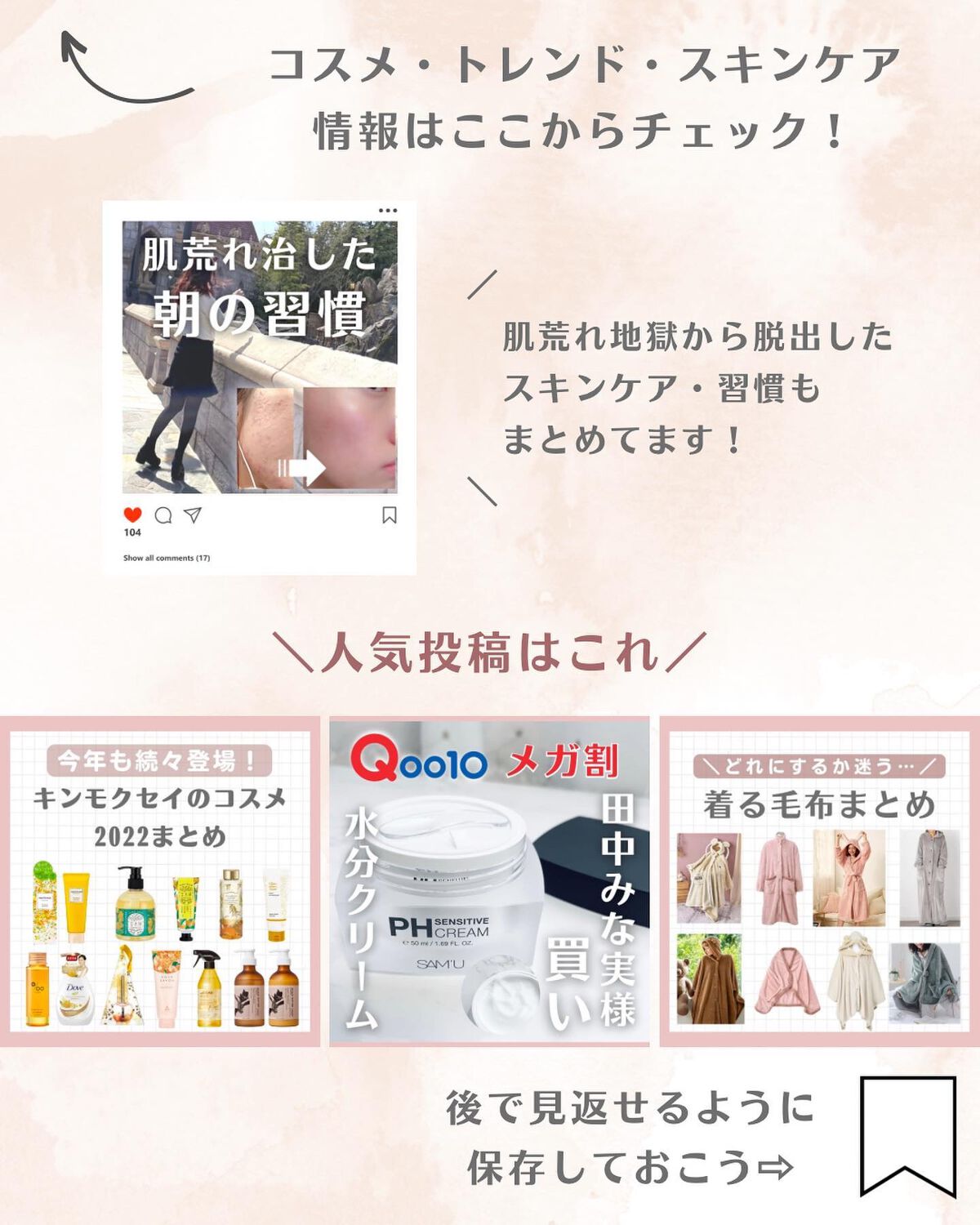 レチノールはビタミンAのことで、コラーゲン生成を促進:シワ・たるみ改善、肌のターンオーバー促進:シミ予防、皮脂分泌を抑える:毛穴閉じる、ニキビ改善の効果が得られるので、今話題になっています🌟 ただレチノール配合商品は濃度が異なっていて高濃度のものだとヒリヒリしてしまうことも😭 敏感肌さんや、肌荒れ中の方は要注意です! まずは低濃度のレチノールから始めるか週1回から様子を見て使い始めるのが◎ レチノールは紫外線に弱い成分です。必ず夜のスキンケアに取り入れましょう!