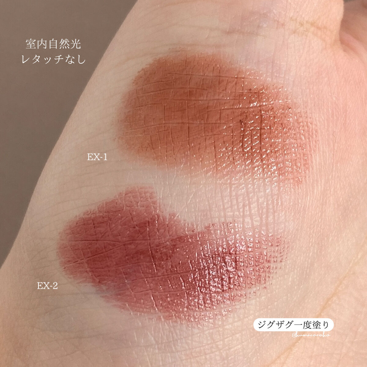 濃く発色し、暗いトーンのボルドーカラー。ワインカラー全開で、重ね塗りすればするほど色が濃いからクールな印象に仕上がります❤️🔥 これくらい暗いトーンのリップは珍しいから、限定色なのが勿体無い...💭