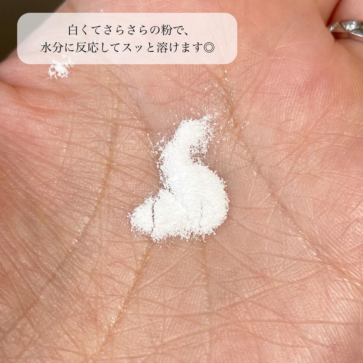- 炭酸*1と24H安定型ビタミンC*2がひとつになった、なめらかな美容パウダー。化粧水、美容液、ジェル、シートパックなど、水分のあるスキンケアにプラスして、いつものケアがスペシャルに。炭酸*1が肌にうるおいやハリツヤをあたえ、24H安定型ビタミンC*2が、角質層すみずみまで届く。毛穴や乾燥によるくすみ、ハリ、年齢サインなどオトナの悩み肌をクリアに導き、輝くような素肌へ。敏感肌もOK。お顔だけでなく、首やデコルテ、ザラつきの気になる脇やお尻などにもおすすめです。 *1 炭酸Na(整肌成分) *2リン酸アスコルビルアミノプロピル(保湿成分) ※本品に配合しているビタミンC誘導体について、50℃の中性水溶液に溶解させて変化を確認したところ、24時間後でも99%以上が分解せずに存在しているということが試験によりわかりました
