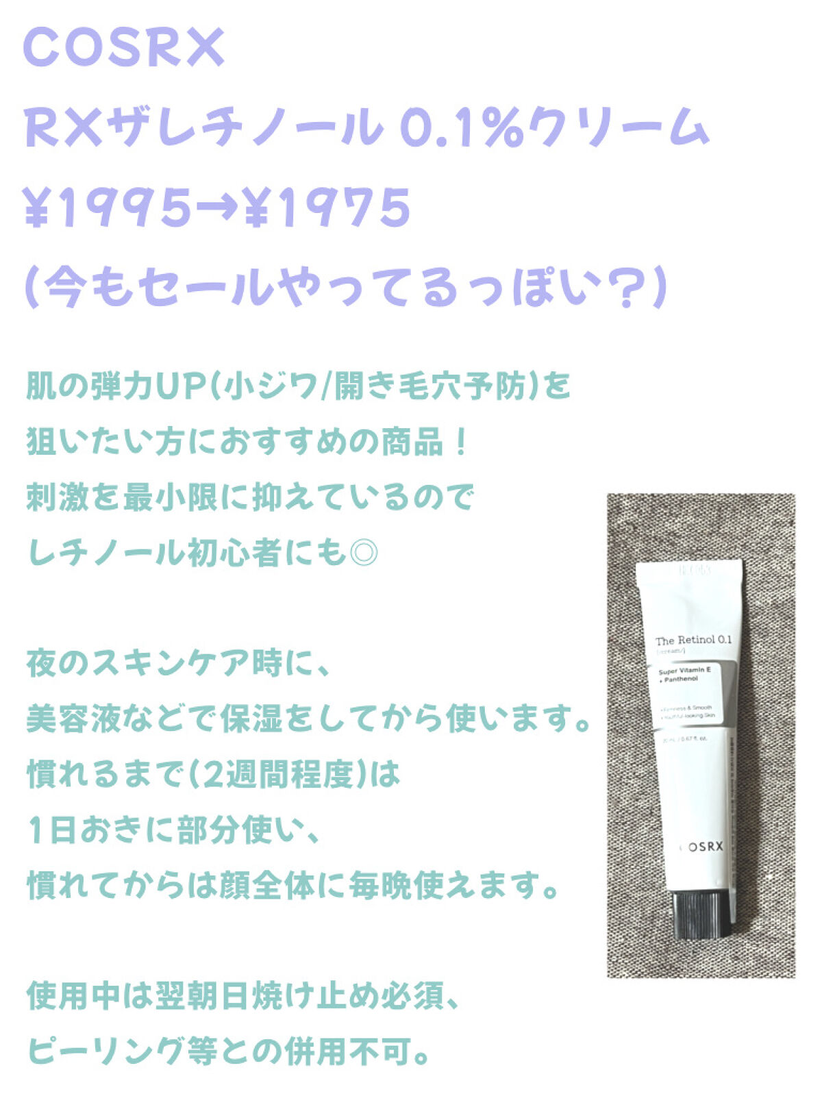 COSRX RXザ・レチノール0.1クリーム | 2,600円 |