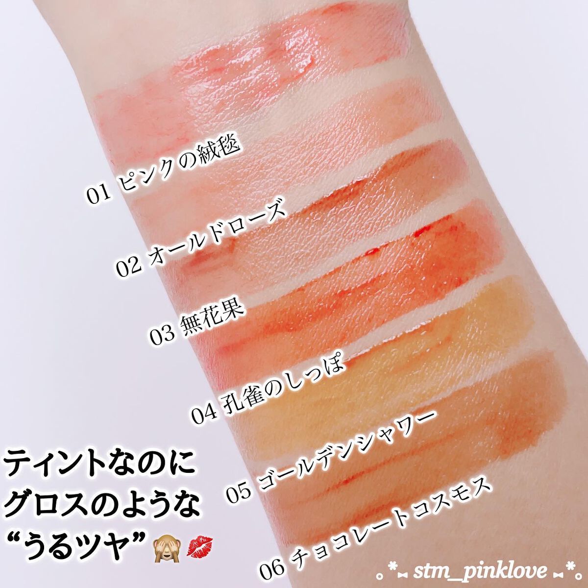 | 口紅・グロス・リップライナーランキング第42位 | 乾燥しにくく、艶感をキープしてくれて、ティント特有の色持ちも良く、ぷるっとしたジューシーな唇に仕上がります | 詳細を見る | |