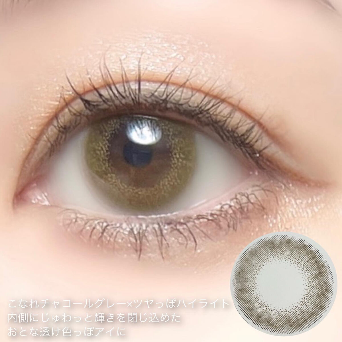 個性的なカラーからナチュラルなものまで幅広いラインナップで見てて楽しかったです! 透明感のあるブルーグレーが瞳に溶け込み、リアルなグレーアイに見せるレンズ。 透け感のある色味だけどしっかり発色するナチュラルハーフ系カラコン。着色直径も小さめなので着せ替え感があってかわいい。 N's COLLECTIONはレンズのつけ心地もすごく良くて他のカラーもとっても可愛いです!