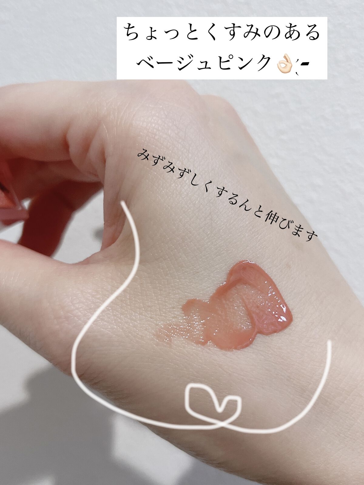 手にとったときにはぬるっとしたリップバームのようなテクスチャーだったので、つやつやすぎちゃうかな?と思ったのですが手に伸ばした時にあらっ?意外とマットめ?となりました。 マットでは無いのですが、ぴたっと肌に馴染む感じ。 カラーはサーモンピンクをもう少し黄身っぽくした感じ。イエベ春さんにとくによいと思います! 日焼けっぽくならずにぽわっと血色が出る感じです。 気に入りました°ʚ(*´꒳`*)ɞ°. 別のカラーも欲しいなぁ~~~