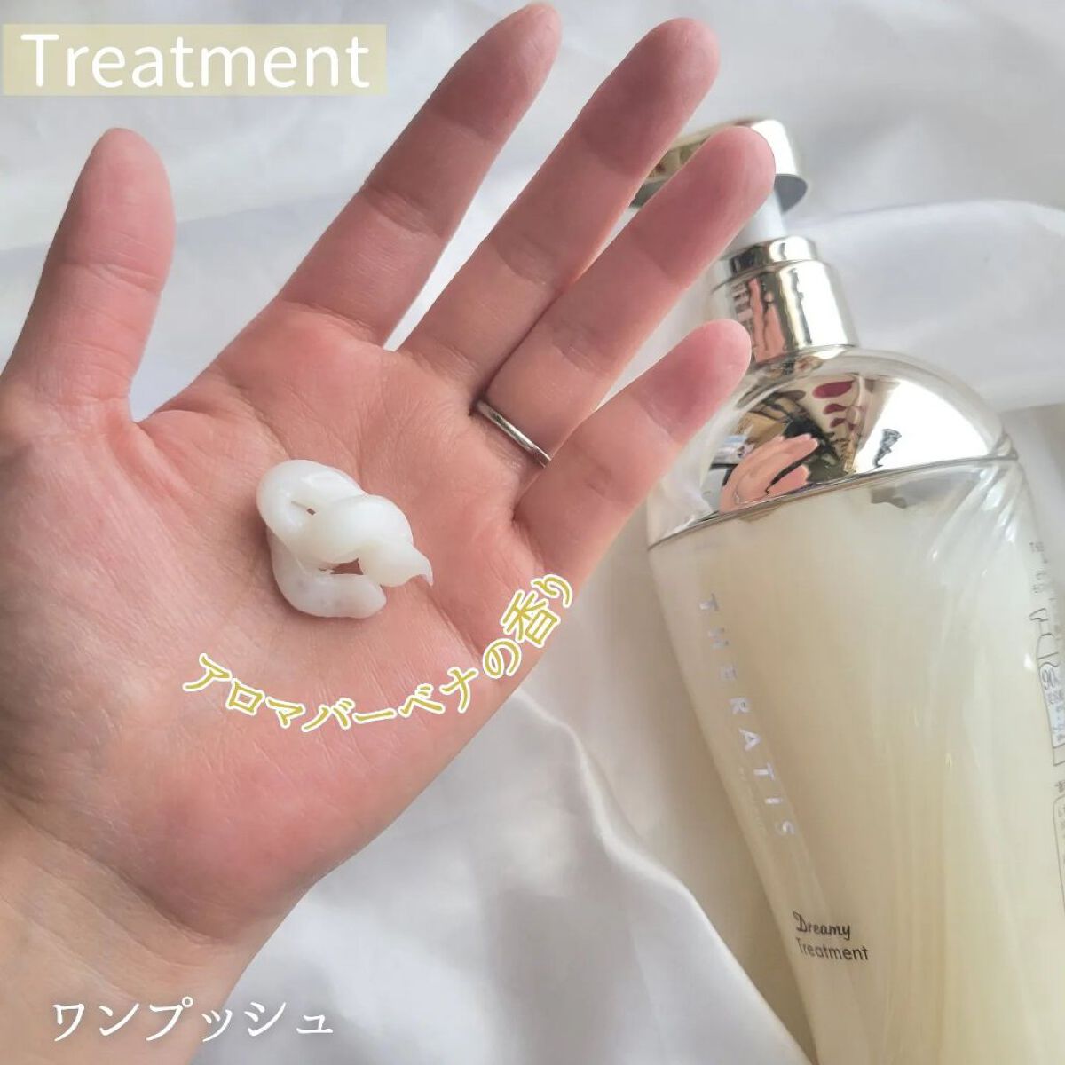 \かなり良かった…!/THERATISドリーミーモイストシャンプー/ヘアトリートメント各¥1,540・シャンプー泡立ち★★★★★洗浄力★★★★☆きしみにくさ★★★★☆香りの持続力★★★★☆イランイランアロマ香り・トリートメントサラサラ★★★★...