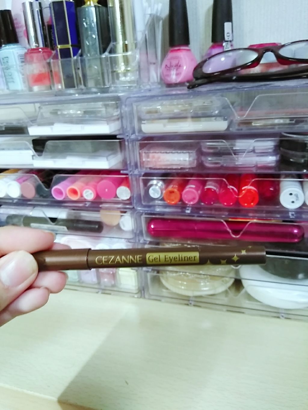 たった550円で1品3役の CEZANNEジェルアイライナー。 キラキラと薄ピンク色に光って アイライナーとしてもキレイだけど 自然な仕上がり具合だし、メイク慣れしてなくてもそれっぽく仕上がる。