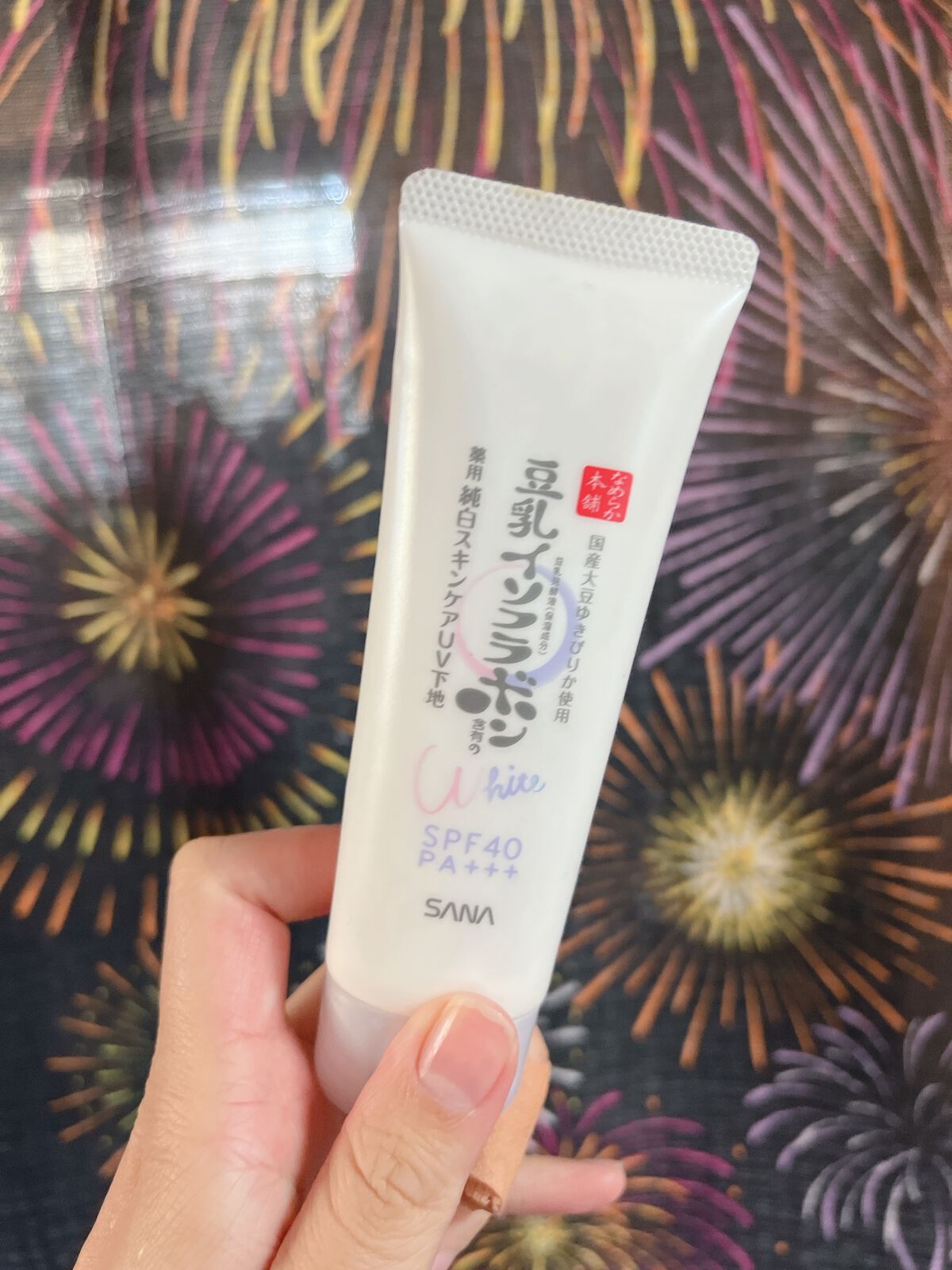 - <薬用美白スキンケアUV下地> 豆乳の美白スキンケアUV下地。肌荒れ&ニキビ予防しながら美白!メラニンの生成を抑え、シミ・そばかすを防ぎます。トーンアップ(メイク効果による)&皮脂崩れ防止。化粧水・美容液・乳液・クリーム・UVカット・化粧下地の1本6役。SPF40・PA+++。[販売名:サナ なめらか本舗 薬用美白スキンケアUV下地]