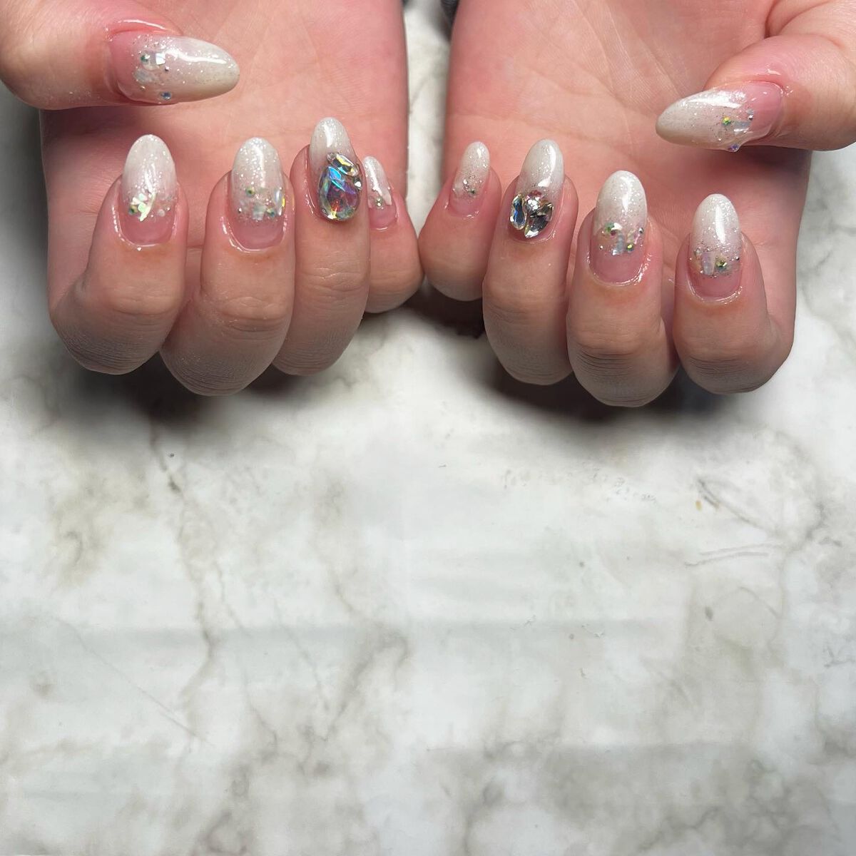 こちらおまかせでさせていただいたネイルです💅💅💅💅看板メニューのおまかせコースです❤️❤️❤️✼••┈┈••✼••┈┈••✼••┈┈••✼••┈┈••✼#glitter#silvernails#glitternails#unicorn#ネイル...