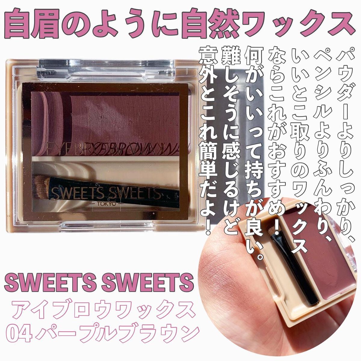 ワックスは上級者が使うイメージがあって使いこなせるか不安でしたがコレめちゃくちゃ簡単にふんわり眉毛が作れるのでお気に入りです! 黄みを感じないブラウンなので#ブルベ さんにおすすめです! ワックスですがパウダーの質感なので自然な仕上がり! 時短メイクをしたい方におすすめです!