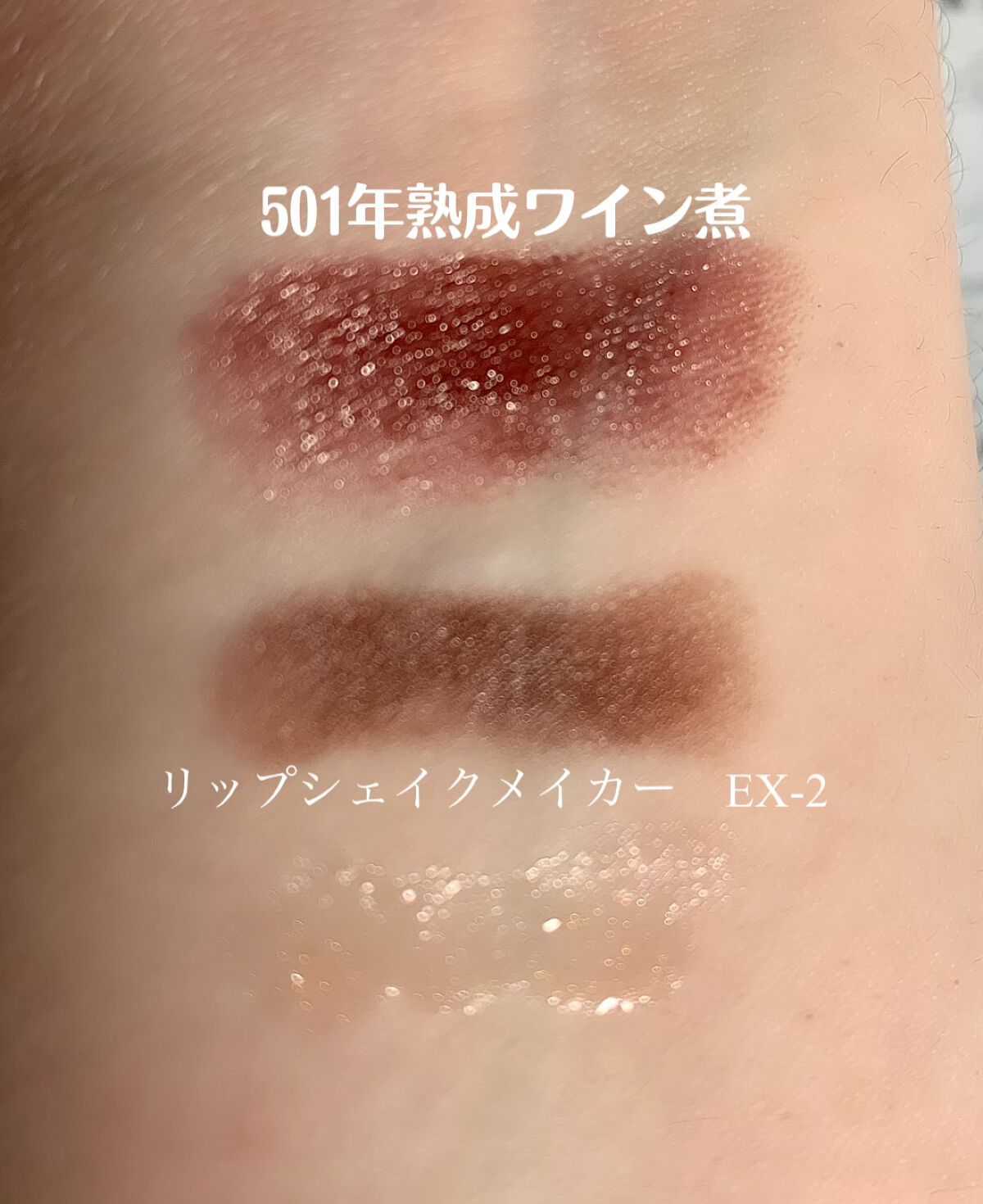 今までにない、ダークな色合いだけどマットじゃなく、艶感があって◎ リップシェイプメイカーのダークカラー系と相性抜群で、色馴染みが良かったです! グロスもラメが入っててキラキラしてて、可愛い! ティッシュオフするとグロスは取れますが、リップシェイクメーカーの方はあまり落ちなかったです!
