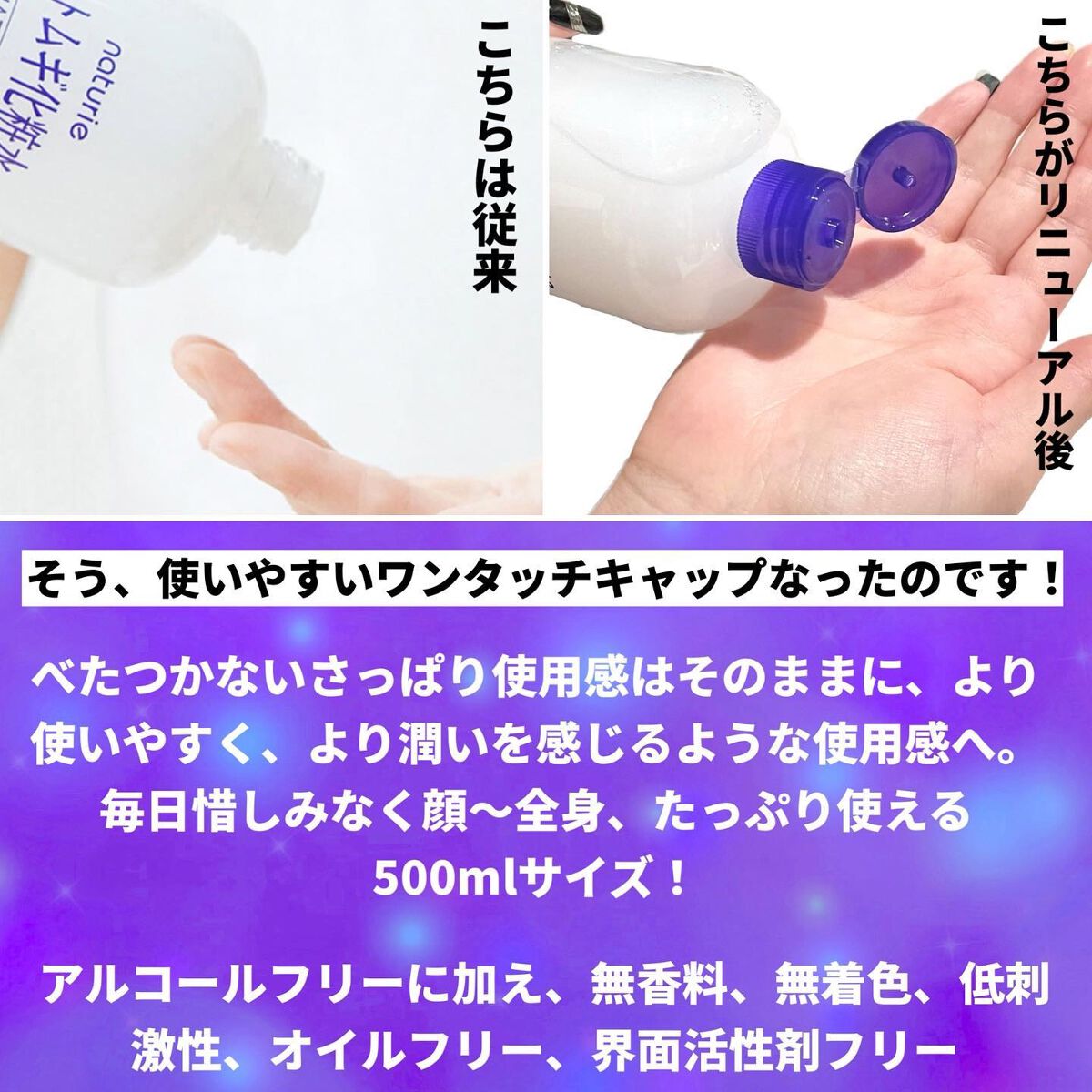 ハトムギエキス20%増量で保湿力UP →天然植物由来の保湿成分ハトムギエキスを従来品より20%増量 アルコールフリーに →毎日快適に使いやすいアルコールフリーになった テクスチャーはみずみずしくベタつかない 肌にスーッと馴染んでくれる