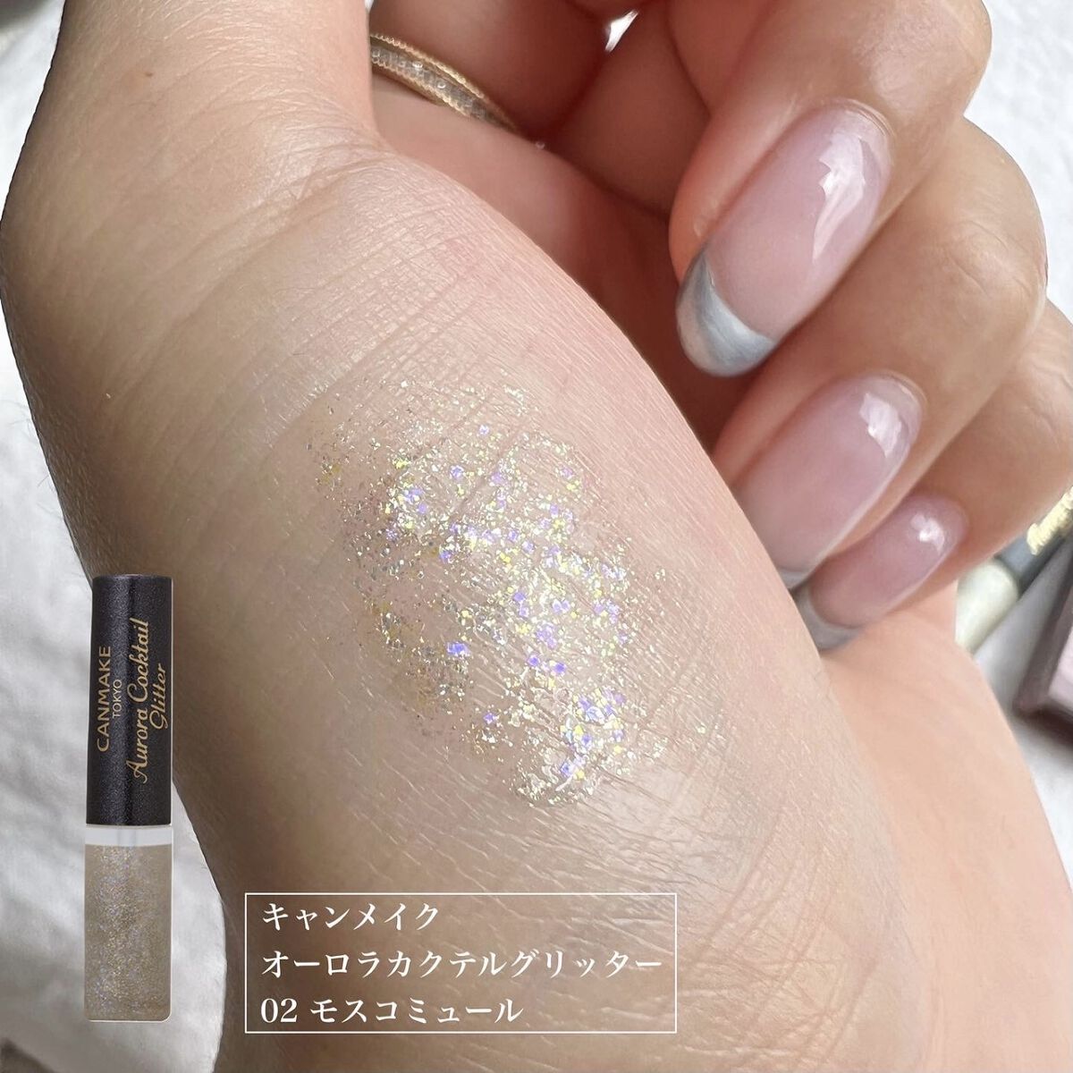 高輝度ラメたっぷりのカラフルグリッター ラメの粒子サイズを大きくしすぎないことで、悪目立ちしない絶妙な輝きに仕上げた 密着力も良いし、ギラギラしすぎない🙆🏻♀️ やわらかく使い勝手の良い極細筆で、狙ったところにラメをオン