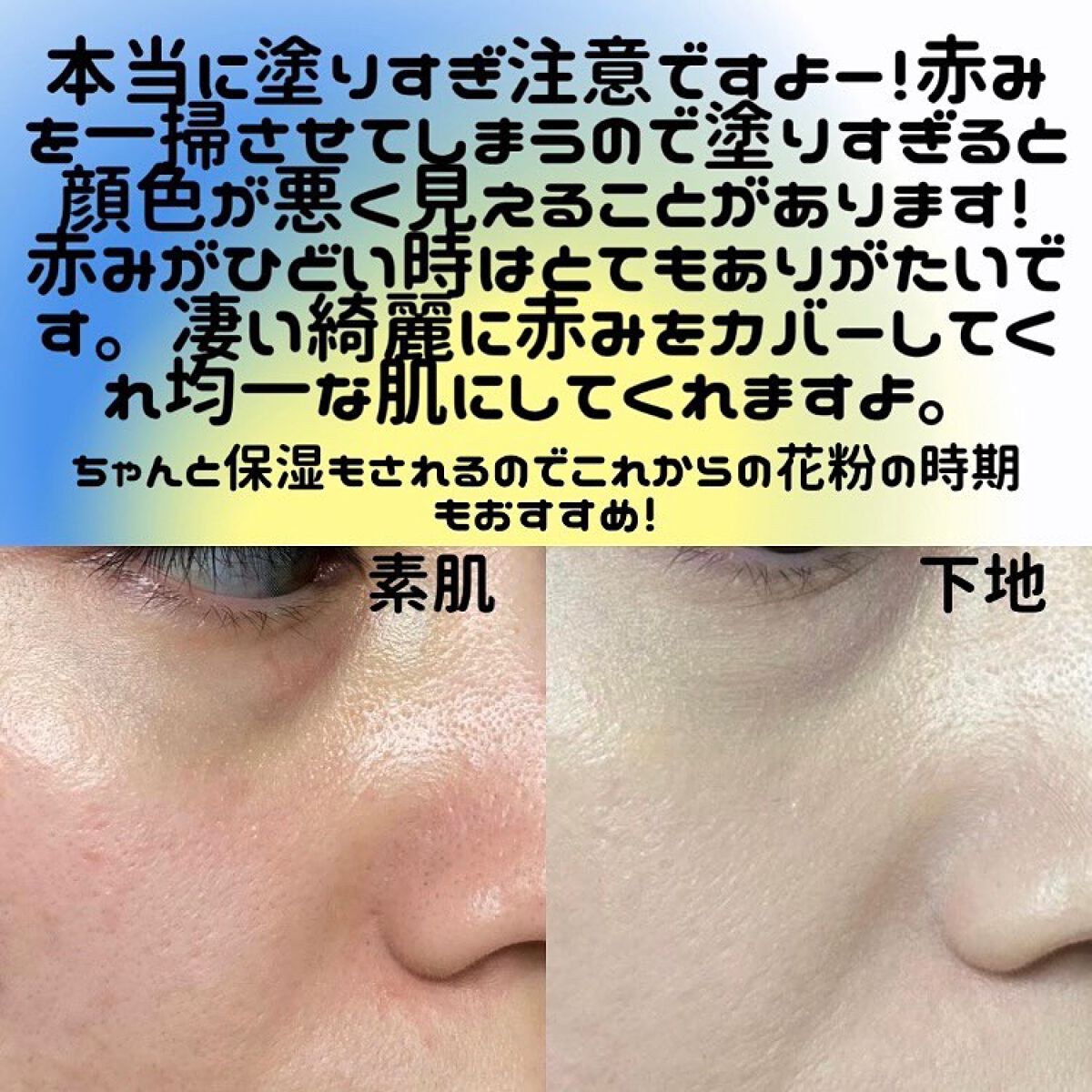 - 赤みをきちんとカバーするスキンケア兼用下地。緑色のクリームが肌でベージュ色に変化し、ニキビ跡やくすみをカバーします。