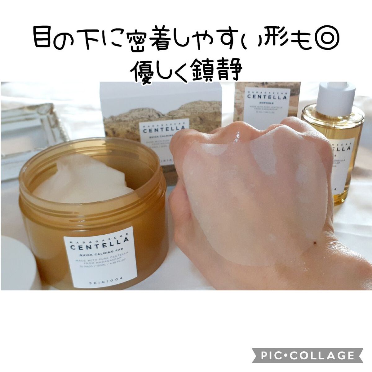 マダガスカルで育った高品質のツボクサエキス(センテラアジアチカ)を配合した鎮静や保湿・肌バリアに特化したアンプル 無香料なのも嬉しいポイントの1つ👍 直径7cmの大きめパッド くぼみがあるので目元に沿うようにパックも出来ちゃう優れもの