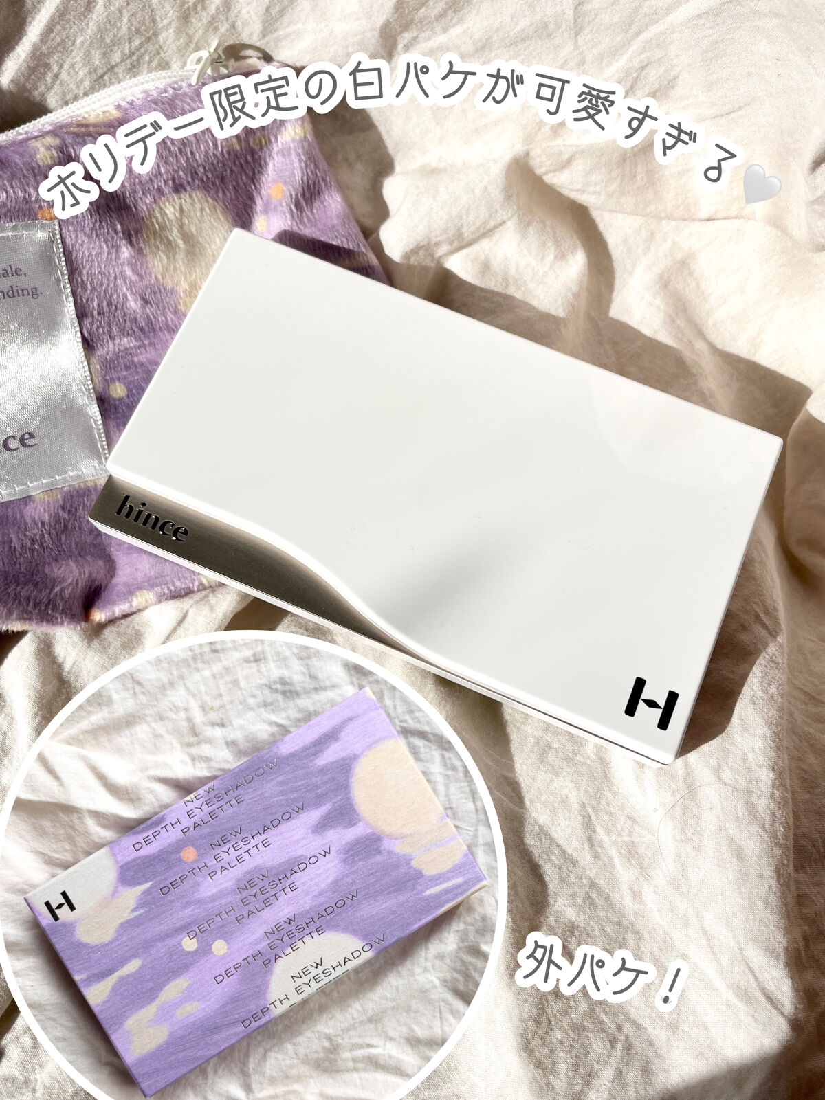 hinceニューデップスアイシャドウパレットのホリデー限定カラー(̨̡ᐢ ⸝⸝o̴̶̷̤ ̫̭ o̴̶̷̤⸝⸝ ᐢ)̧̢ 白パケが可愛い🩷 配色は甘くて優しいカラー( 💓∀💓) 今回は、左下ピンクキラキラとブラウンを中心に使ってみました⭐️