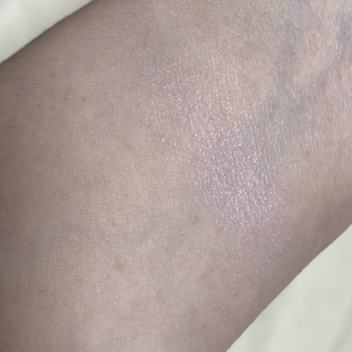 トーンアップするか否かの確認が漏れていて、無色透明のつもりで購入。開封時にパッケージを見てトーンアップやん!?!?となりました。しかしトーンアップと言っても艶で明るく見える程度の仕上がりで好みでした。 無色透明の方がベースメイク前に仕込むのに使いやすく、そのまま首やボディも塗れちゃうので手軽なんですよね。 塗りたては少しべたつくものの、時間が経つとベタつきは感じずしっとりとした触り心地に。