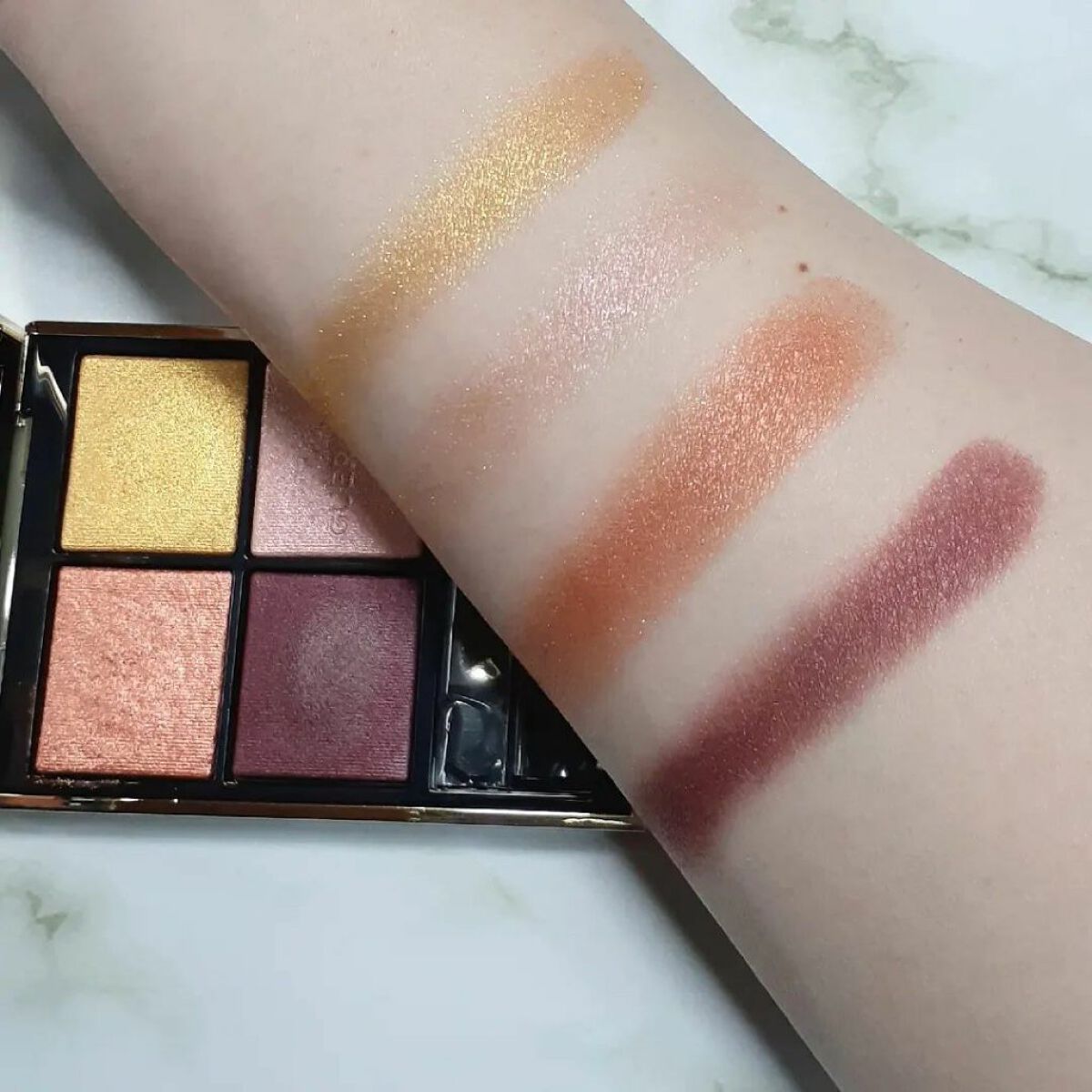 全色にパールとラメがふんだんに入っていて控えめな発色、上品な煌めきが美しい😍❤ 肌馴染みが良く、グラデーションも作りやすいので、どんなに重ね付けしても失敗しない❗ 柔らかめな粉質はしっとりとして密着度が高く、粉飛びもラメ飛びもしません‼ 上品なツヤと輝きは流石👏👏👏❤