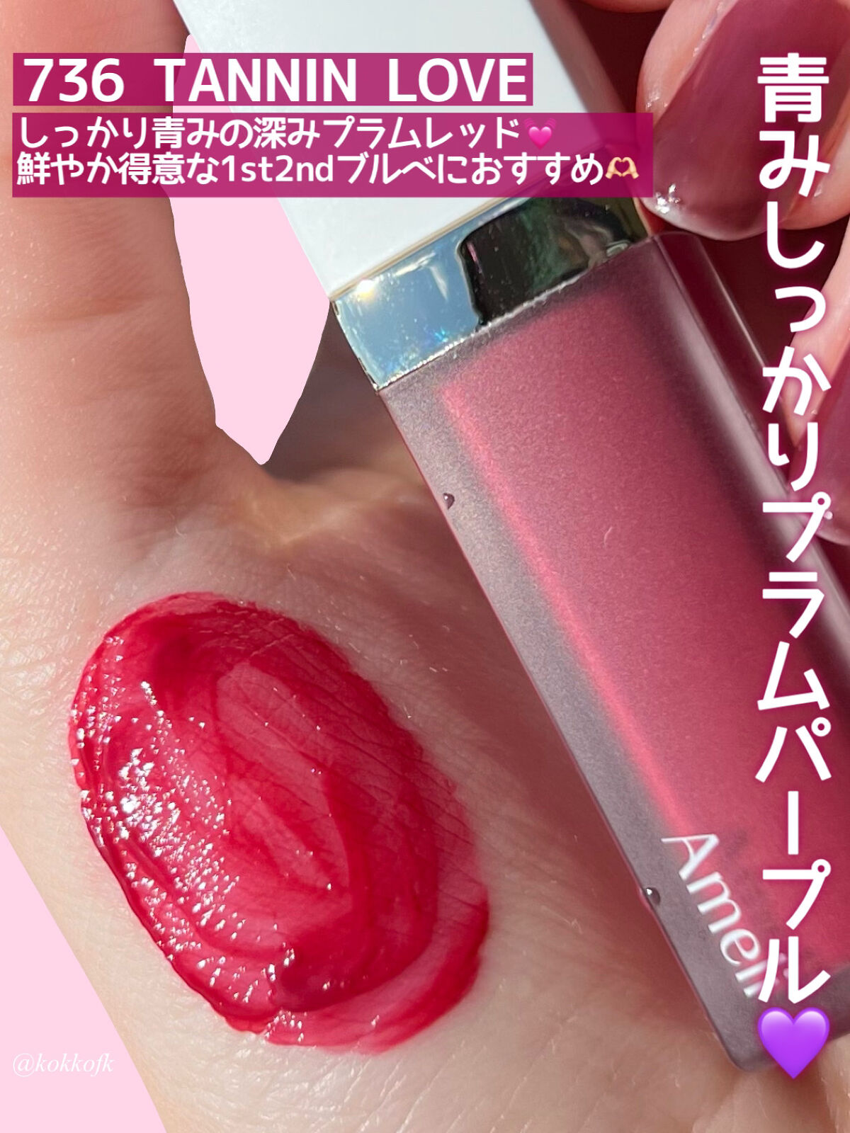 薄く唇に密着する新作マットティント。 マットなのにかなりしっとりとしていて 乾燥を感じなくてびっくりでした! 一気にこなれ感が出るトレンドカラーです♡ やや青みの華やかローズレッド 公式画像より鮮やかめに感じました。 やや黄みの強くて深いオレンジレッド ストロングオータムに超激推しです! やや黄みの非常に深く濃いダークブラウン ディープオータムに激推しです! かわいい雰囲気になれるピンクリップです♡ やや青みの柔らかいくすみピンクベージュ ミューテッドサマーにおすすめです! 青みの落ち着いたローズピンク やや青みのとても鮮やかなビビッドレッド ビビッドウィンターに特におすすめ! 既存マットティントよりもさらに ふわふわなマット感が魅力のリップで、 軽くティッシュオフしてもほとんど落ちない◎ マスクにも激推しのティントなので、 ぜひ皆さんもチェックしてみてね❤︎