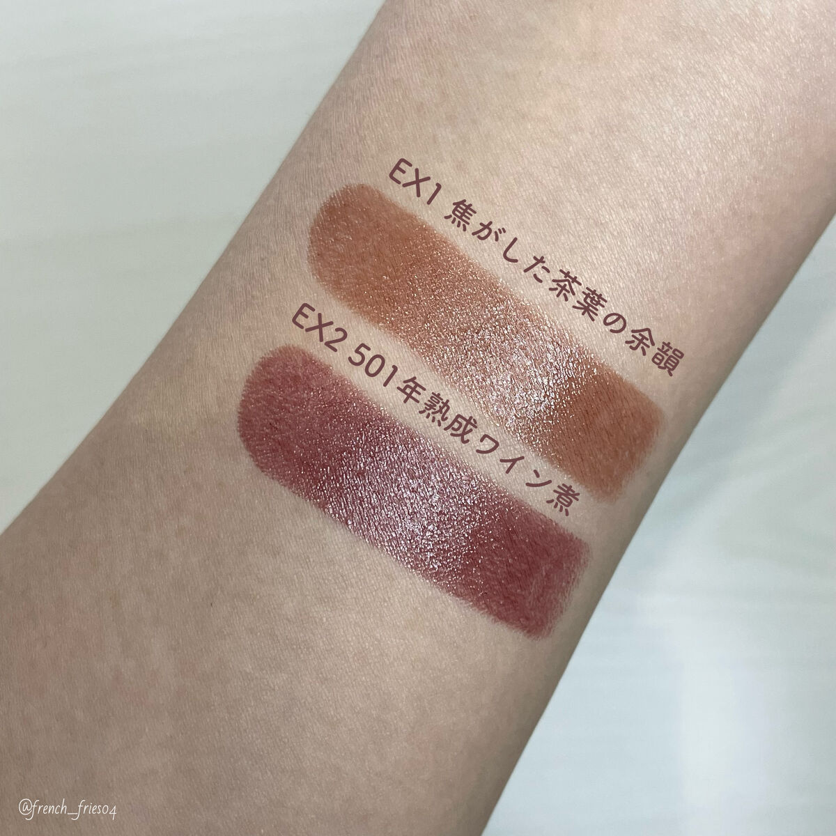 - <01 欲望の塊> テトライソステアリン酸ジペンタエリスリチル、トリ(カプリル酸/カプリン酸)グリセリル、オクチルドデカノール、ラウロイルグルタミン酸ジ(フィトステリル/オクチルドデシル)、ビスアルキル(C16-18)グリセリルウンデシルジメチコン、イソノナン酸イソトリデシル、水添ポリイソブテン、ラウロイルグルタミン酸ジ(オクチルドデシル/フィトステリル/ベヘニル)、パラフィン、合成ワックス、ダイマージリノール酸(フィトステリル/イソステアリル/セチル/ステアリル/ベヘニル)、マイクロクリスタリンワックス、水添マイクロクリスタリンワックス、ヒドロキシステアリン酸エチルヘキシル、トコフェロール、ホホバ種子油、オリーブ果実油、アーモンド油、(エチレン/プロピレン)コポリマー、ポリエチレン、ジメチコン、(+/-)(チタン/酸化チタン)焼結物、マイカ、ラウロイルアスパラギン酸Na、ラウロイルリシン、塩化亜鉛、酸化チタン、酸化鉄、水酸化Al、硫酸Ba、トリイソステアリン酸イソプロピルチタン、酸化スズ、ホウケイ酸(Ca/Al)、合成フルオロフロゴパイト、黄4、黄5、赤104(1)、赤201、赤202 <02 ピンクバナナ> テトライソステアリン酸ジペンタエリスリチル、トリ(カプリル酸/カプリン酸)グリセリル、オクチルドデカノール、ラウロイルグルタミン酸ジ(フィトステリル/オクチルドデシル)、ビスアルキル(C16-18)グリセリルウンデシルジメチコン、イソノナン酸イソトリデシル、水添ポリイソブテン、ラウロイルグルタミン酸ジ(オクチルドデシル/フィトステリル/ベヘニル)、パラフィン、合成ワックス、ダイマージリノール酸(フィトステリル/イソステアリル/セチル/ステアリル/ベヘニル)、マイクロクリスタリンワックス、水添マイクロクリスタリンワックス、ヒドロキシステアリン酸エチルヘキシル、トコフェロール、ホホバ種子油、オリーブ果実油、アーモンド油、(エチレン/プロピレン)コポリマー、ポリエチレン、ジメチコン、(+/-)(チタン/酸化チタン)焼結物、マイカ、ラウロイルアスパラギン酸Na、ラウロイルリシン、塩化亜鉛、酸化チタン、酸化鉄、水酸化Al、硫酸Ba、トリイソステアリン酸イソプロピルチタン、酸化スズ、ホウケイ酸(Ca/Al)、合成フルオロフロゴパイト、黄4、黄5、赤104(1)、赤201、赤202 <03 陽炎> テトライソステアリン酸ジペンタエリスリチル、トリ(カプリル酸/カプリン酸)グリセリル、オクチルドデカノール、ラウロイルグルタミン酸ジ(フィトステリル/オクチルドデシル)、ビスアルキル(C16-18)グリセリルウンデシルジメチコン、イソノナン酸イソトリデシル、水添ポリイソブテン、ラウロイルグルタミン酸ジ(オクチルドデシル/フィトステリル/ベヘニル)、パラフィン、合成ワックス、ダイマージリノール酸(フィトステリル/イソステアリル/セチル/ステアリル/ベヘニル)、マイクロクリスタリンワックス、水添マイクロクリスタリンワックス、ヒドロキシステアリン酸エチルヘキシル、トコフェロール、ホホバ種子油、オリーブ果実油、アーモンド油、(エチレン/プロピレン)コポリマー、ポリエチレン、ジメチコン、(+/-)(チタン/酸化チタン)焼結物、マイカ、ラウロイルアスパラギン酸Na、ラウロイルリシン、塩化亜鉛、酸化チタン、酸化鉄、水酸化Al、硫酸Ba、トリイソステアリン酸イソプロピルチタン、酸化スズ、ホウケイ酸(Ca/Al)、合成フルオロフロゴパイト、黄4、黄5、赤104(1)、赤201、赤202 <04 パンプキンワイン> テトライソステアリン酸ジペンタエリスリチル、トリ(カプリル酸/カプリン酸)グリセリル、オクチルドデカノール、ラウロイルグルタミン酸ジ(フィトステリル/オクチルドデシル)、ビスアルキル(C16-18)グリセリルウンデシルジメチコン、イソノナン酸イソトリデシル、水添ポリイソブテン、ラウロイルグルタミン酸ジ(オクチルドデシル/フィトステリル/ベヘニル)、パラフィン、合成ワックス、ダイマージリノール酸(フィトステリル/イソステアリル/セチル/ステアリル/ベヘニル)、マイクロクリスタリンワックス、水添マイクロクリスタリンワックス、ヒドロキシステアリン酸エチルヘキシル、トコフェロール、ホホバ種子油、オリーブ果実油、アーモンド油、(エチレン/プロピレン)コポリマー、ポリエチレン、ジメチコン、(+/-)(チタン/酸化チタン)焼結物、マイカ、ラウロイルアスパラギン酸Na、ラウロイルリシン、塩化亜鉛、酸化チタン、酸化鉄、水酸化Al、硫酸Ba、トリイソステアリン酸イソプロピルチタン、酸化スズ、ホウケイ酸(Ca/Al)、合成フルオロフロゴパイト、黄4、黄5、赤104(1)、赤201、赤202 <05 ダークフィグ> テトライソステアリン酸ジペンタエリスリチル、トリ(カプリル酸/カプリン酸)グリセリル、オクチルドデカノール、ラウロイルグルタミン酸ジ(フィトステリル/オクチルドデシル)、ビスアルキル(C16-18)グリセリルウンデシルジメチコン、イソノナン酸イソトリデシル、水添ポリイソブテン、ラウロイルグルタミン酸ジ(オクチルドデシル/フィトステリル/ベヘニル)、