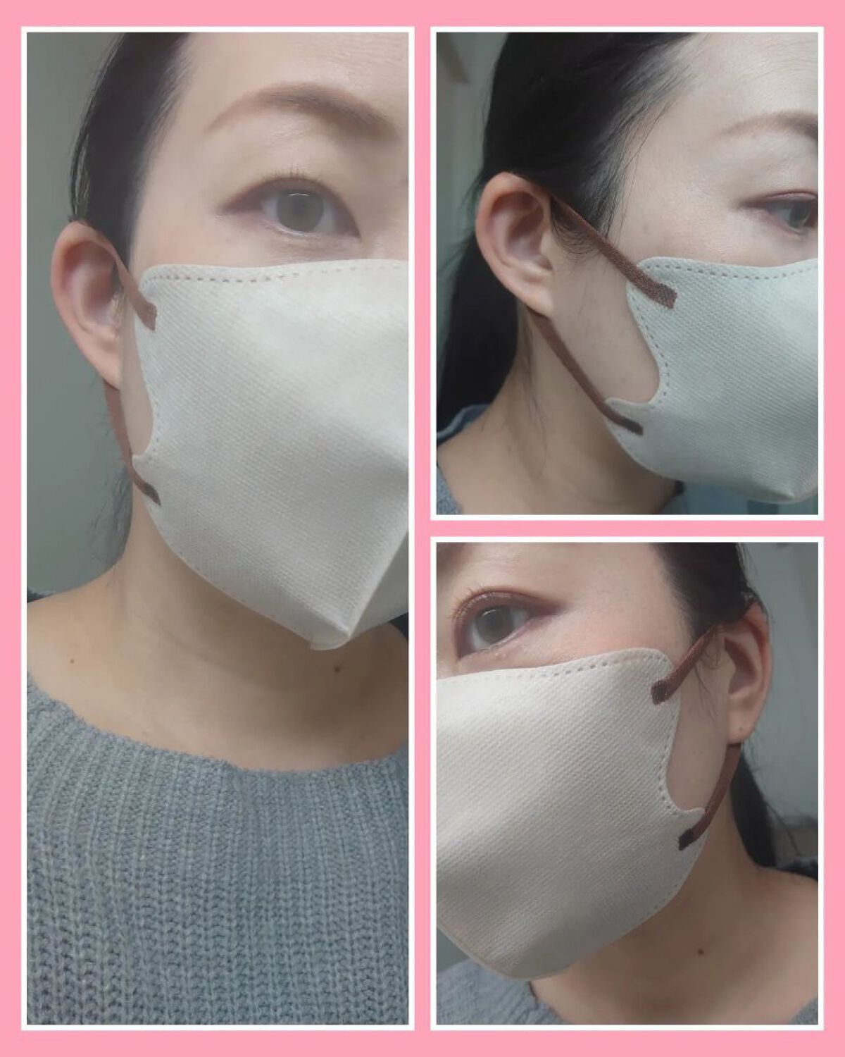 ちっちゃ顔タイプ ダークブラウン×やわらかピンクのバイカラータイプのマスク ちゃんと引き締まって見えるから視覚効果ってすごい😂💓 バイカラー色味もお洒落で可愛くて好き💗 肌触りも良く、平ゴムなので耳も痛くなりにくいです😌✨ 他にもほりふか顔、血色感タイプがありメイクを選ぶようになりたい顔を目指せるマスクです💫