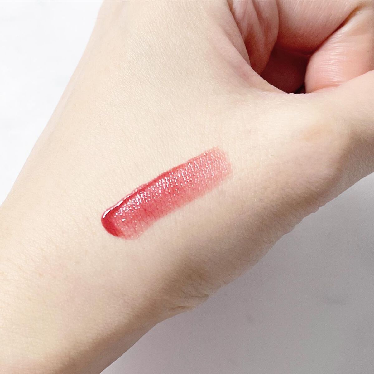 濡れたような質感にほんのり キラっとする微細なラメ。まさにホリデーっぽさ全開。 ラメが細かいので悪目立ちせず 日常的に使いやすく また持ち運びにも便利なので ヘビロテ決定です。 サラサラする質感では無いので マスクには不向きですが 気にならないくらい可愛いです。